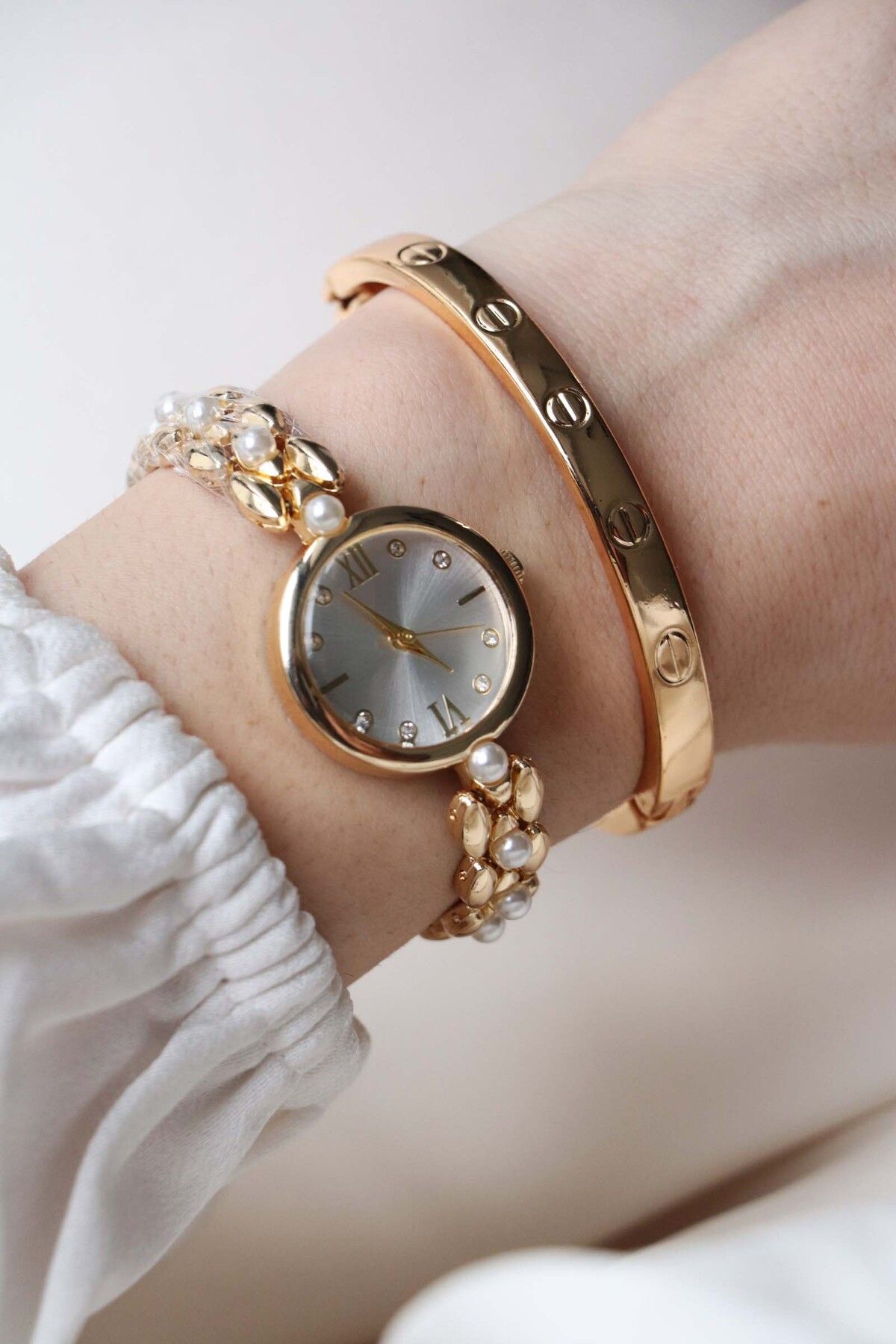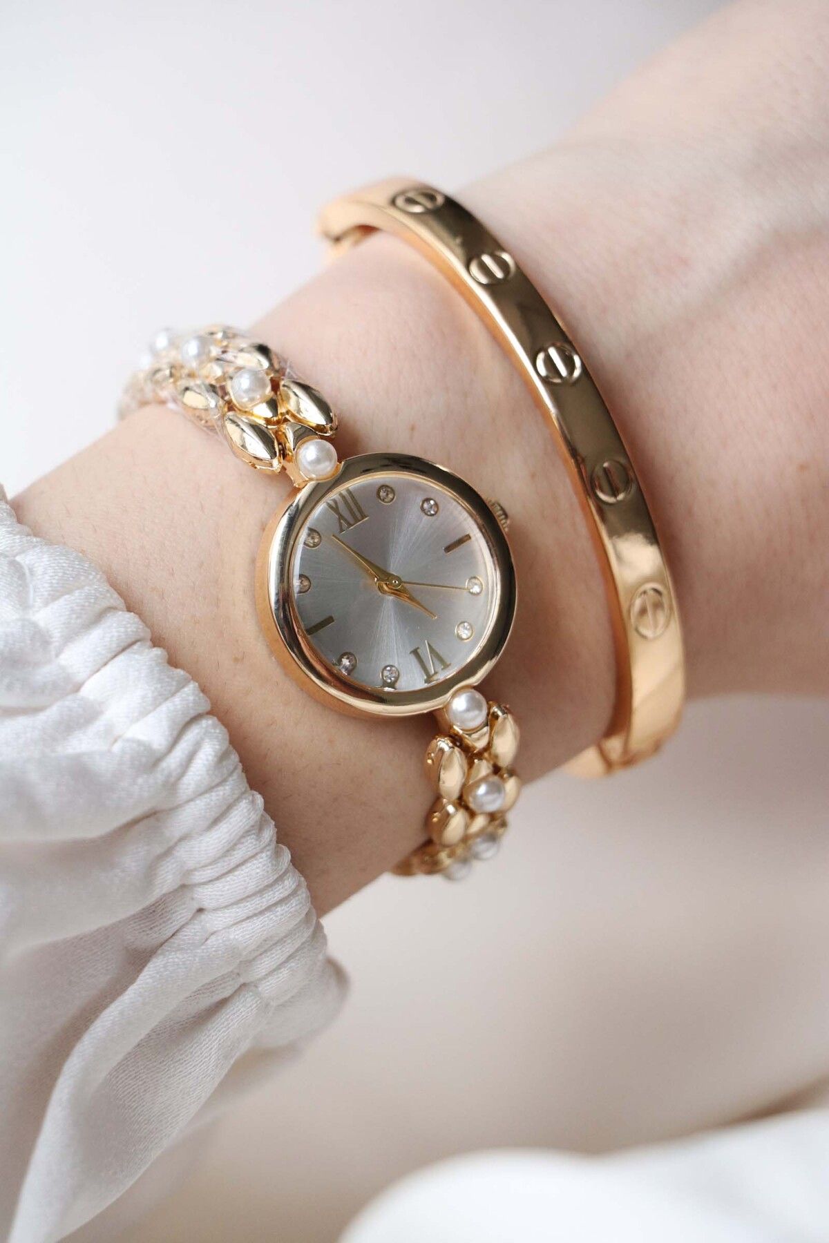 Northwatch Minimal Oval Kasa İncili Kadın Kol Saati & Çelik Bileklik
