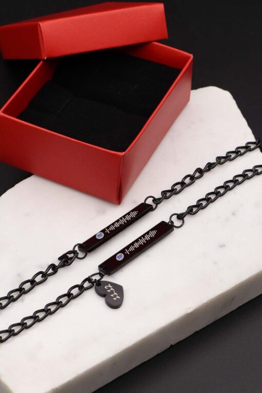 Northwatch Unisex Spotify Kodlu Siyah Renk Çift Bileklik & İsimli Ve Sevgili Bileklik