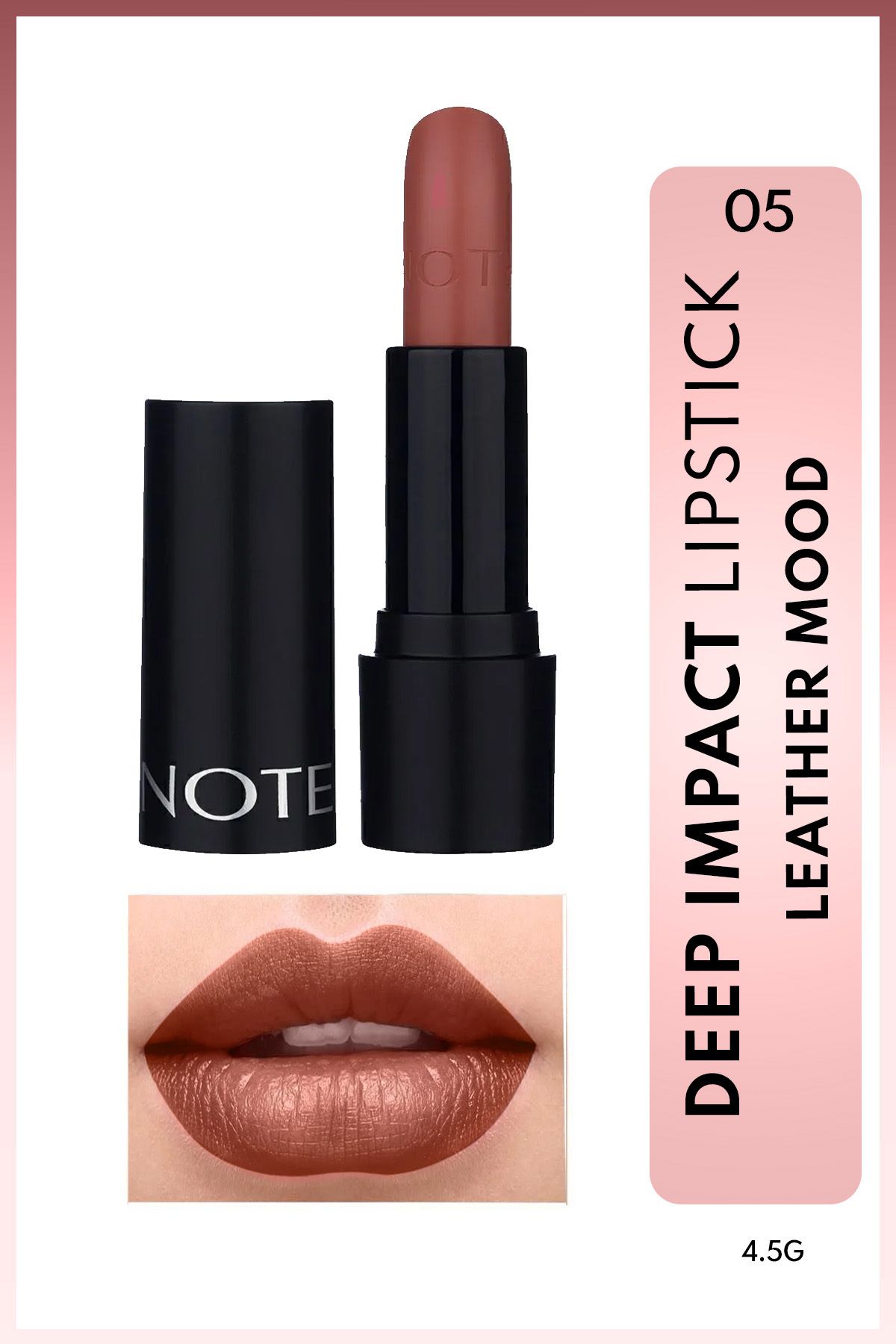 NOTE Deep Impact Lipstick Kremsi Dokulu Yarı Parlak Ruj 05 Leather Mood - Kahverengi ürününü en uygun fiyata kozmetikara.com sitemizden sipariş verebilirsiniz.
