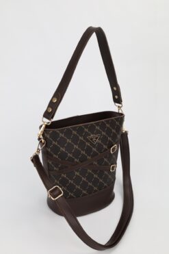 NOTHING Kadın Monogram Kahve Kemer Detaylı Kova Model El Omuz Ve Çapraz Çanta Carla