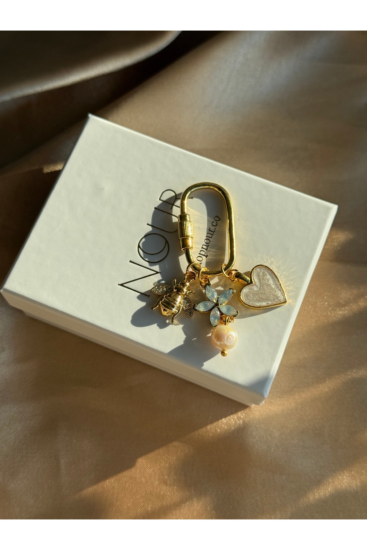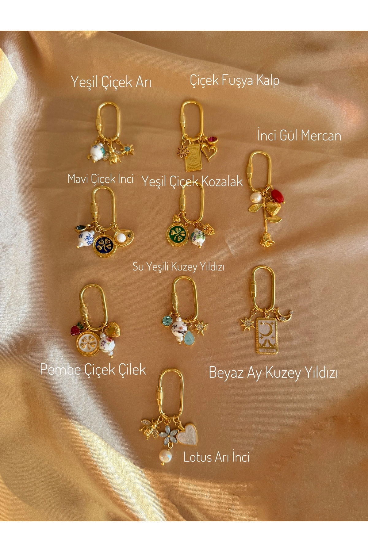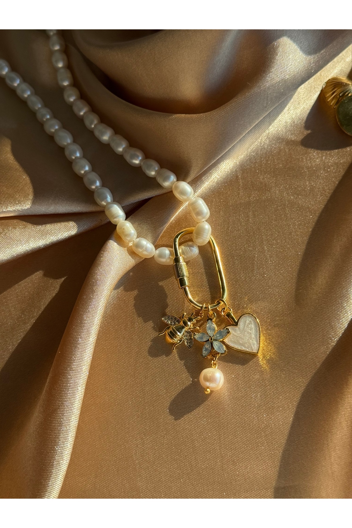 Nour Co Ataç Lotus Sedef Kalp Kolye ve Çanta Charmı