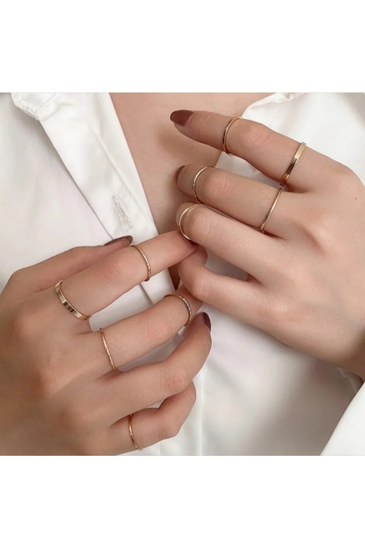 NOVELLA AKSESUAR Altın Renk Kadın Gold 10'lu Kombin Yüzük Seti ürünü ucuz fiyat, hızlı kargo imkanı ile hemen sitemizden sipariş verin.