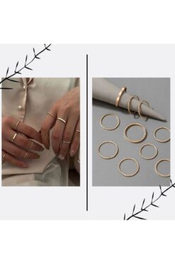 NOVELLA AKSESUAR Altın Renk Kadın Gold 10’lu Kombin Yüzük Seti