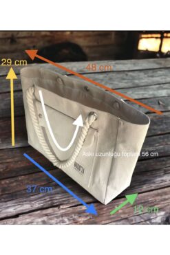 Çantanın ebatları : yüzey 37 x 29 cm Genişlik 12 cm Ağız kısmı toplam uzunluk 48 cm’dir İçi astarlı ve ceplidir.