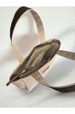 Nuggita Fermuarlı Orta Boy Mumlu Kanvas Bej Rengi Omuz Çantası