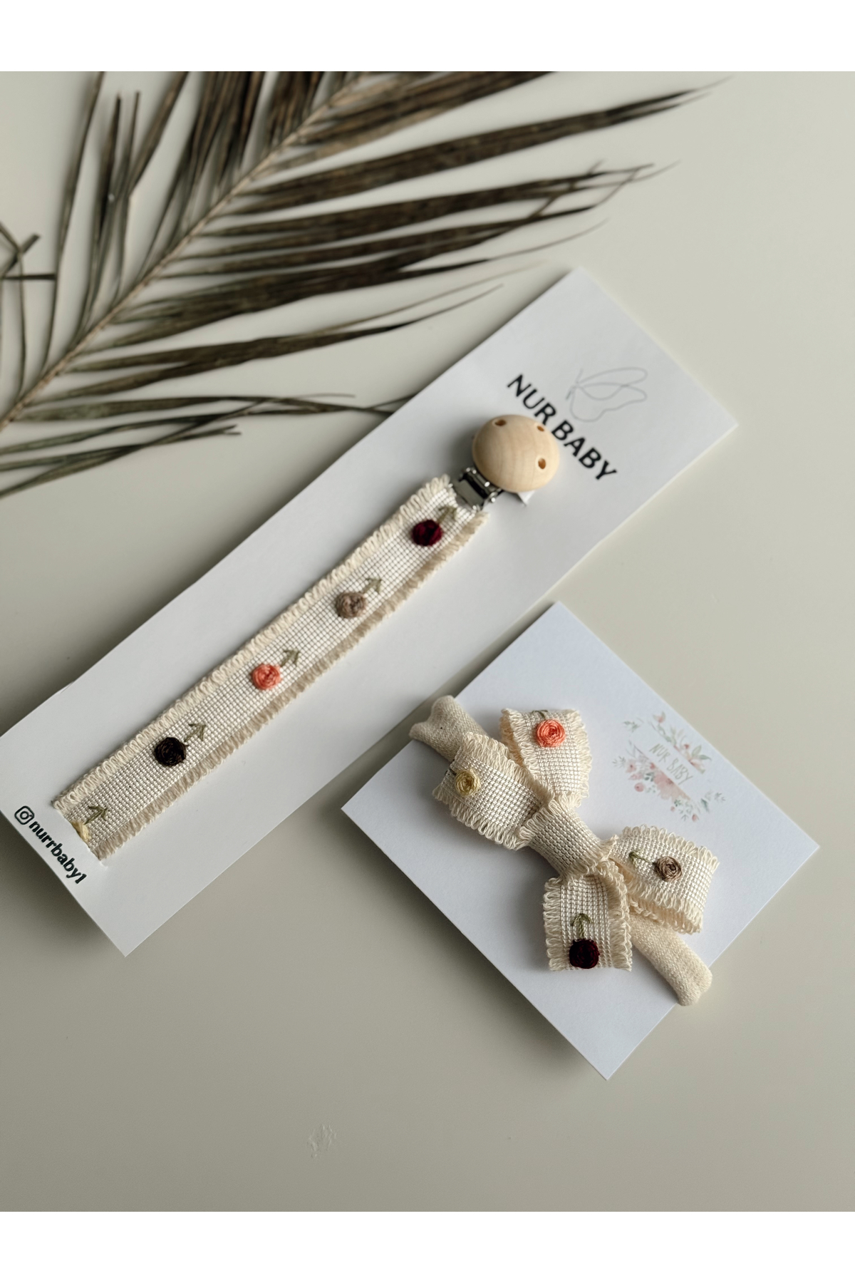 Nur Baby Kız bebek emzik askısı bandana set Çiçek detaylı