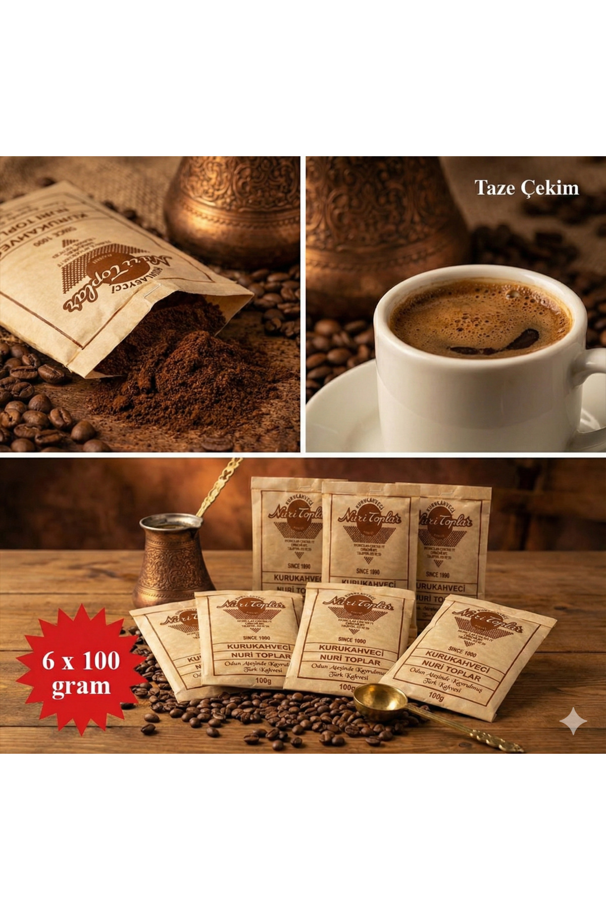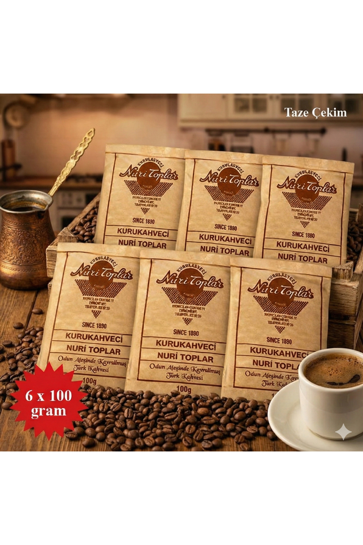 Nuri Toplar Kurukahveci Odun Ateşinde Kavrulmuş Geleneksel Türk Kahvesi 6 x 100 gr ürünü ucuz fiyat, hızlı kargo imkanı ile hemen sitemizden sipariş verin.