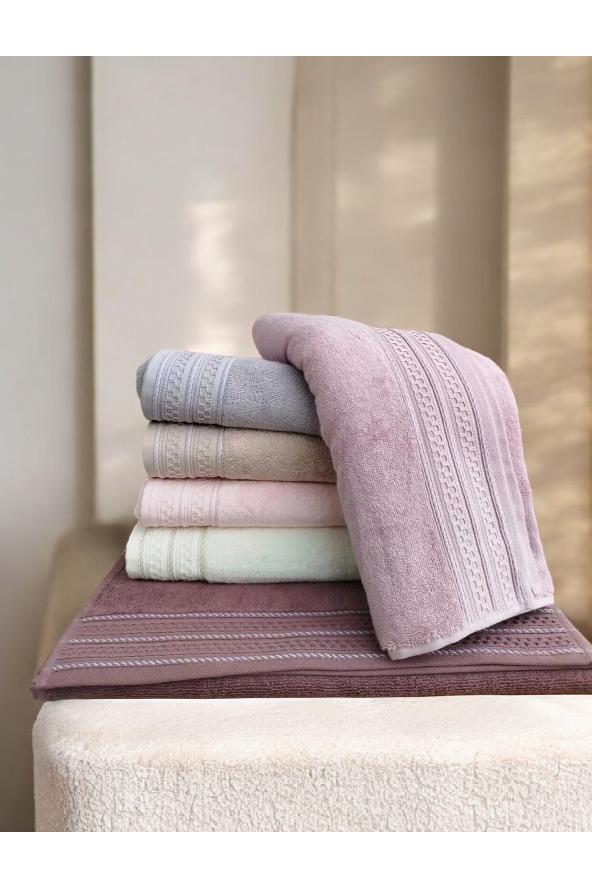 Özdilek Elissa Havlu 10 Adet - Pembe Beyaz Gri Taş Krem