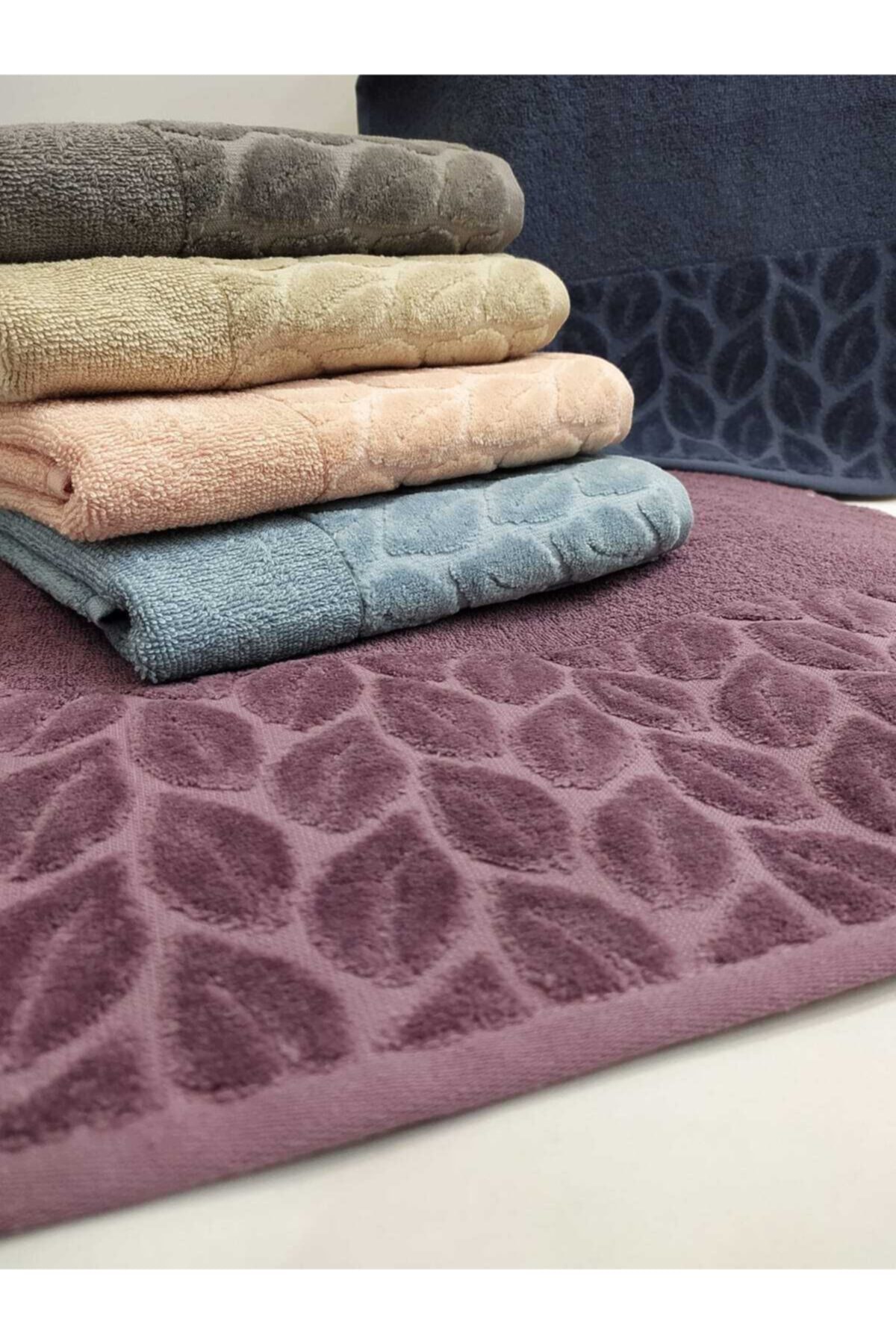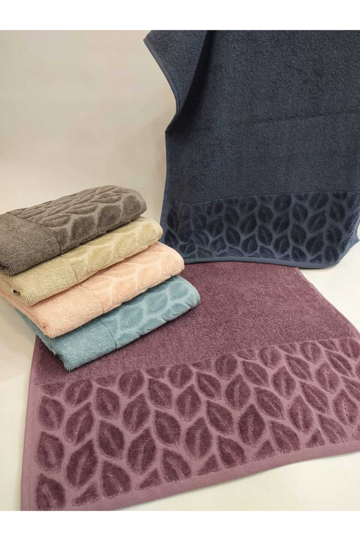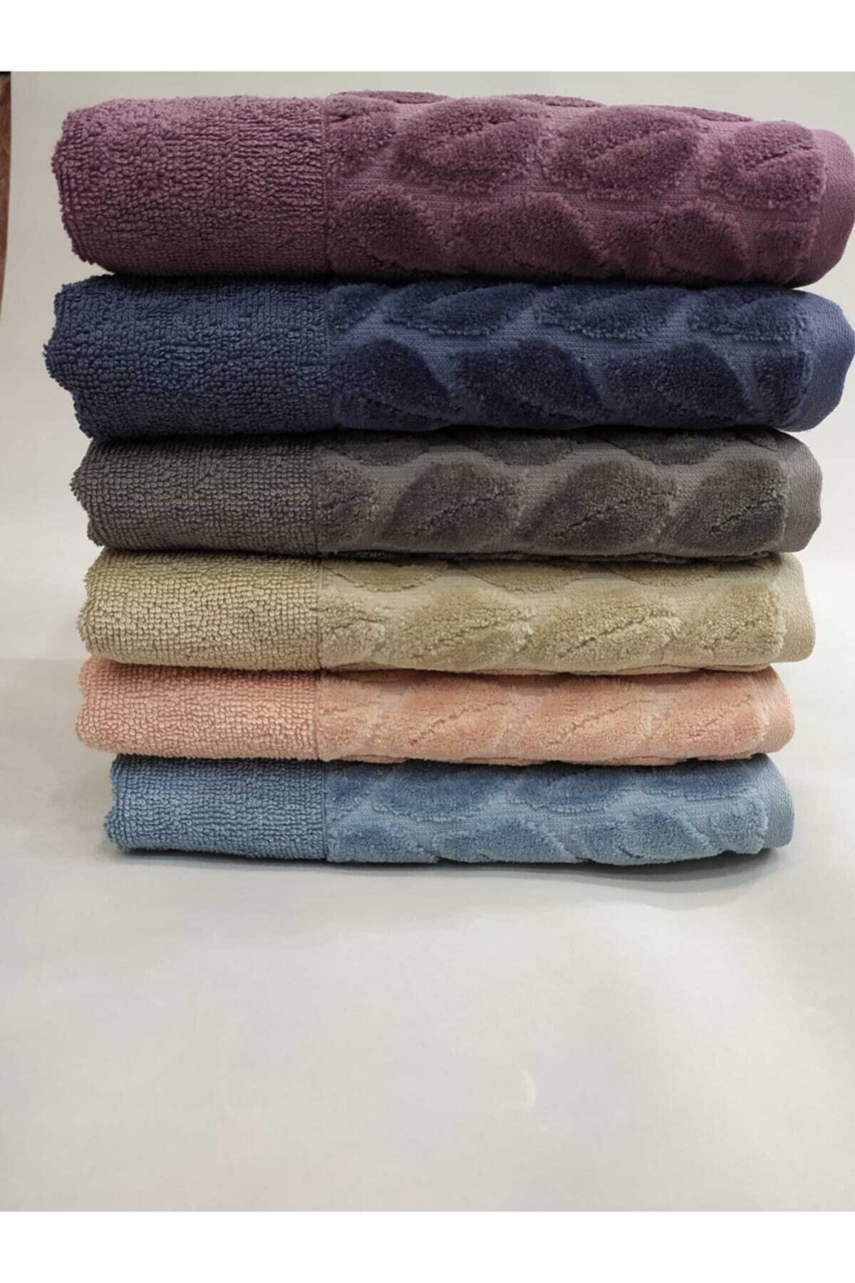 Nurpak Marka Hazal Model 6’lı El-yüz Havlu Seti Mavi-somon-kahve-füme-lacivert-mürdüm 50×90)