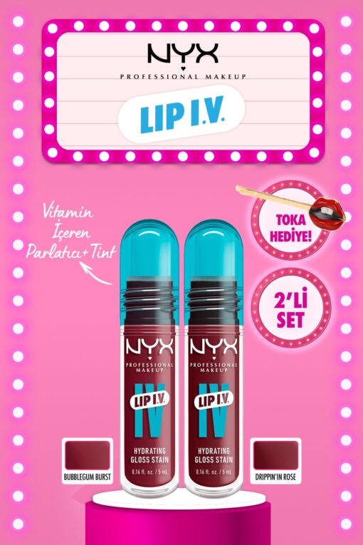 NYX Professional Makeup LIP I.V. Vitamin İçeren Parlatıcı + Tint - 07 Bubblegum Burst & 08 Drippin In Rose Toka Hediyeli Set ürünü ucuz fiyat, hızlı kargo ve kredi kartına 12 ay taksit imkanı ile hemen sitemizden sipariş verin.