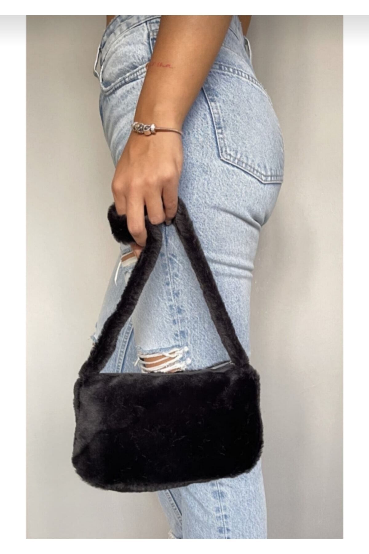 NZCLUB Siyah Peluş Tüylü Baget Çanta Puufi Salaş El Omuz Çantası