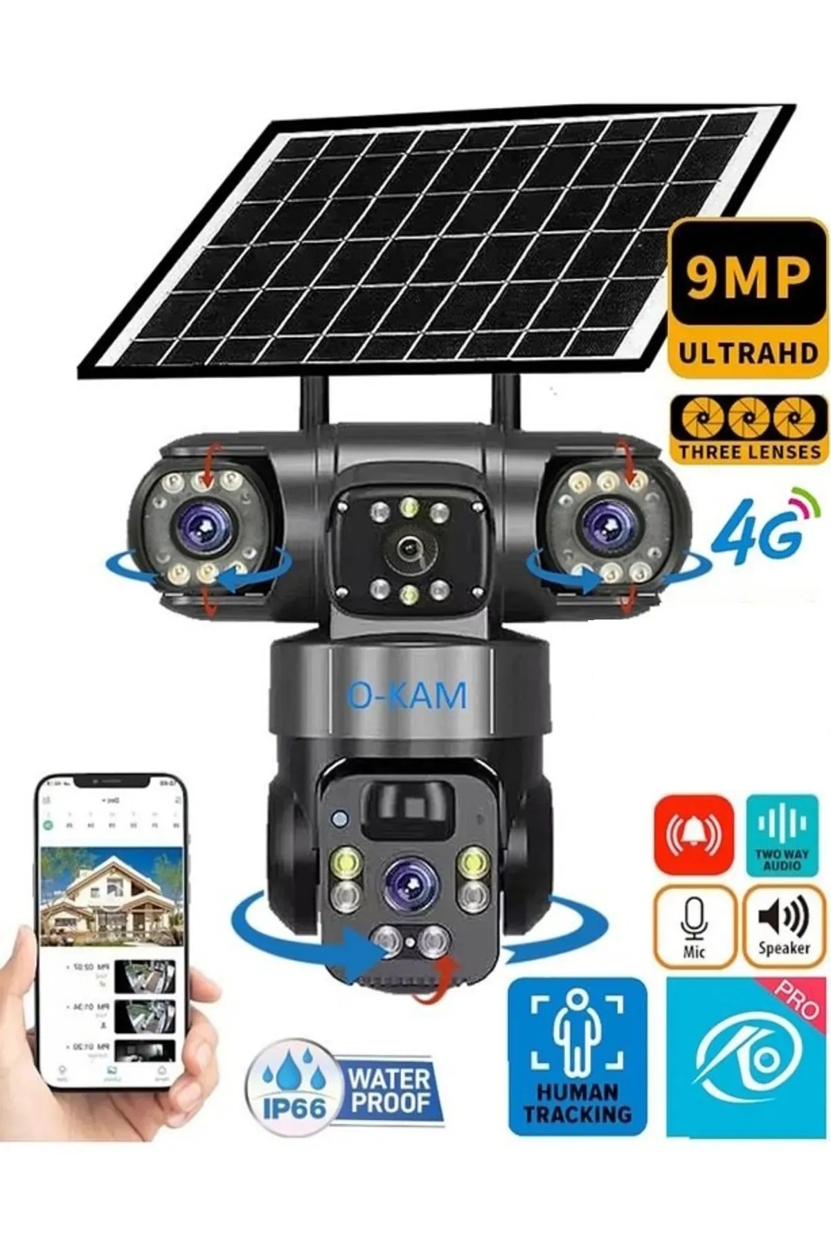 O-KAM 6060 256GB 9mp (3+3+3) Üç Kameralı Ultrahd 4g Güneş Enerjili Akıllı Güvenlik Kamerası ürünü ucuz fiyat, hızlı kargo imkanı ile hemen sitemizden sipariş verin.