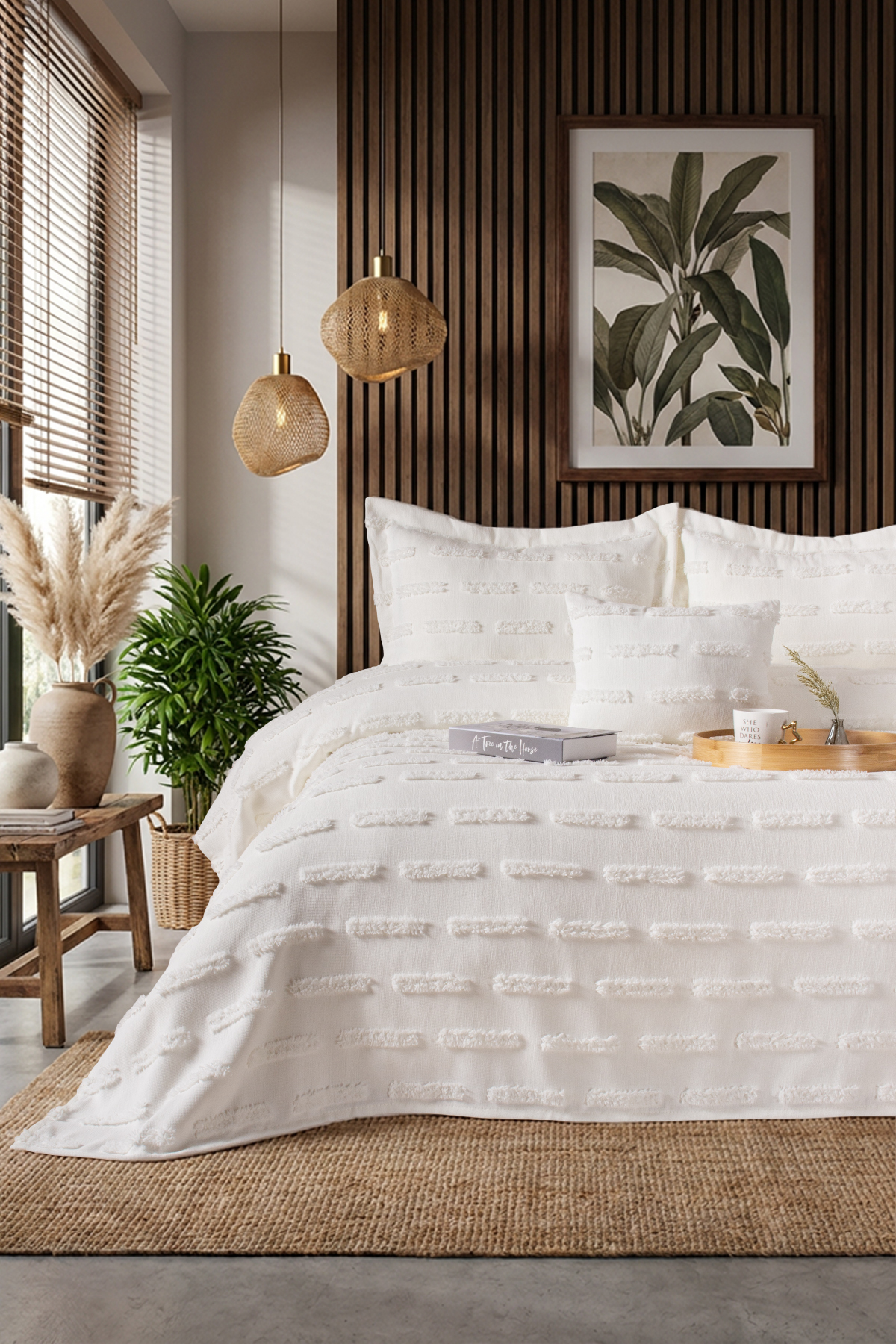 best house decor Delux Bohem Çift Kişilik Yatak Örtüsü Takımı 240×250 ve 2 adet Yastık EKRU