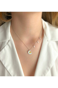 OGO SİLVER 925 Ayar Gümüş Seviyor Sevmiyor Beyaz Papatya Kolye ( Işıklı Kutu Hediye )