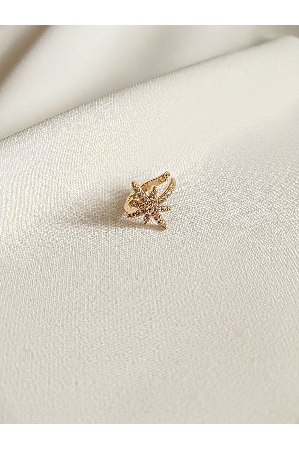 Okkostore Kadın Altın Rengi Kuzey Yıldız Detaylı Kıkırdak Küpesi