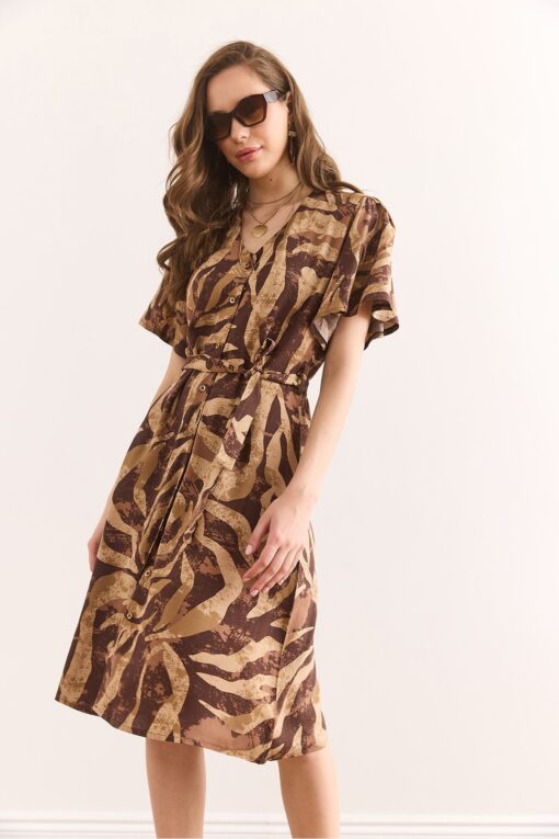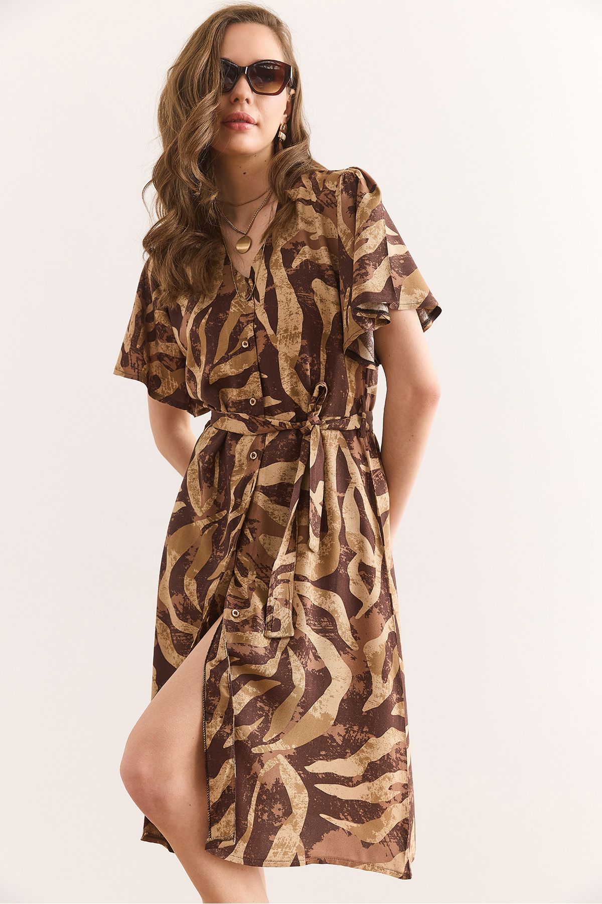Bianco Lucci Kadın V Yaka Yarasa Kesim Desenli Elbise 22188 60251720