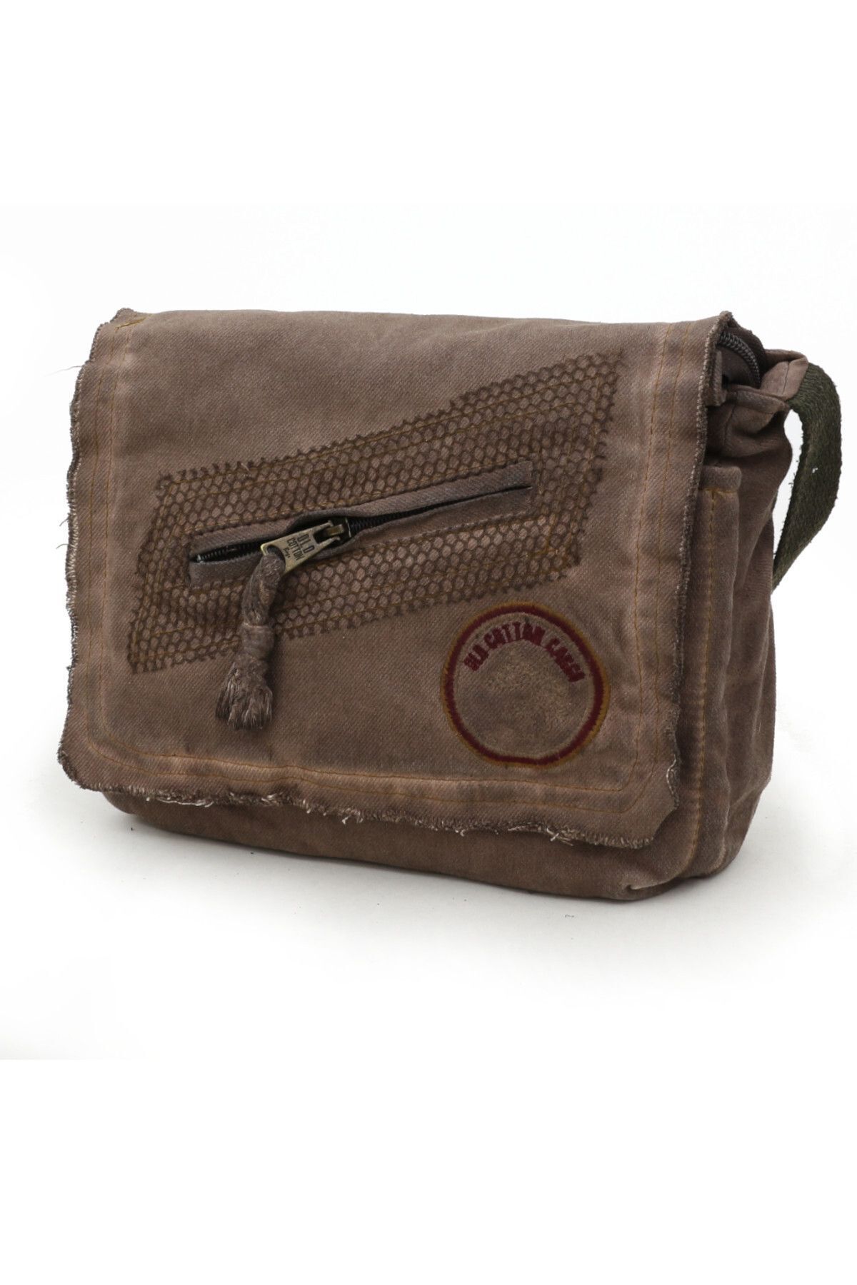 Old Cotton Cargo 7136 Küçük Kahverengi Günlük Omuz Çantası Kanvas Okul Vintage Tablet Çantası