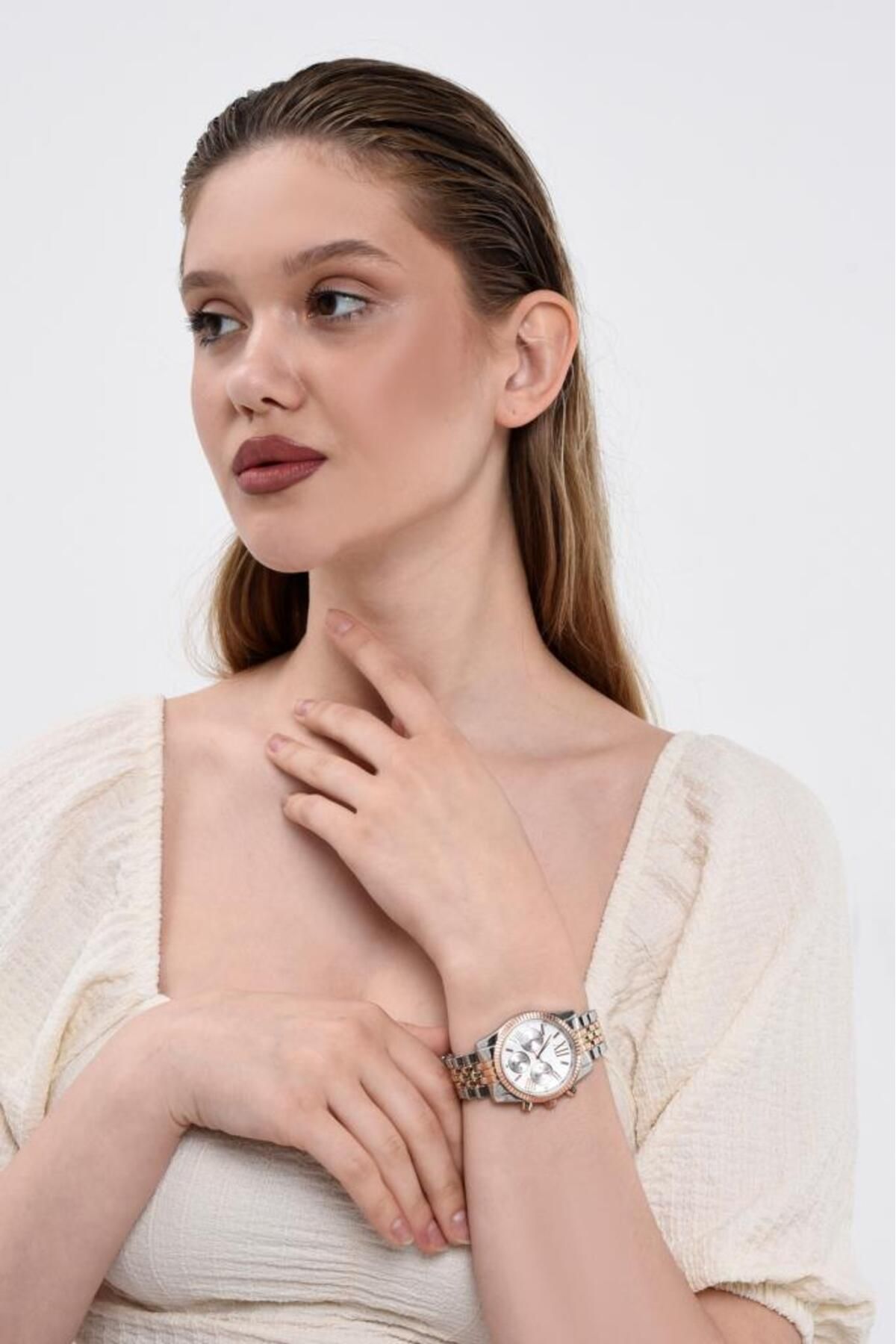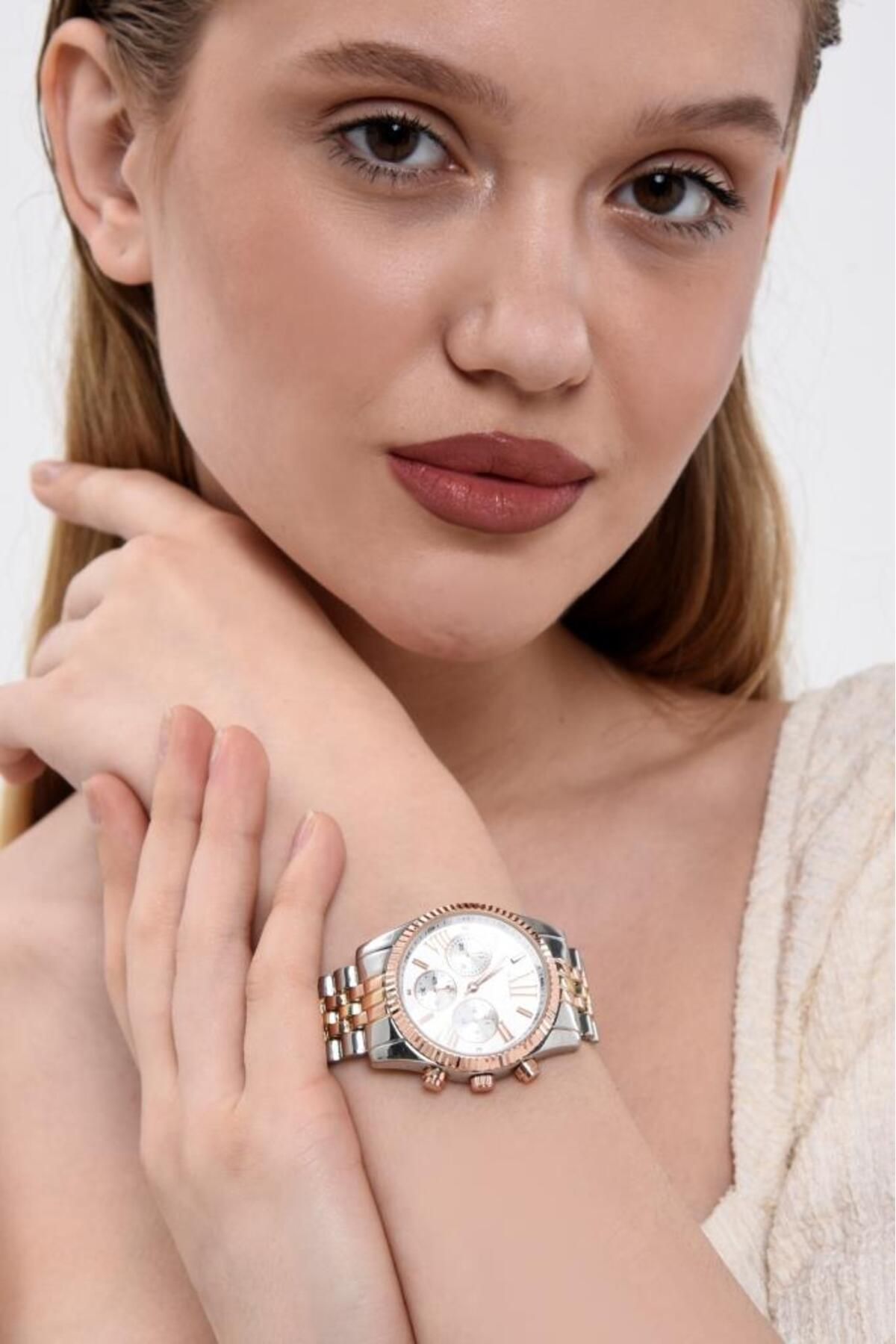 OQQO Roma Rakam Kasa Detaylı Gümüş Rose Altın Kadın Kol Saati