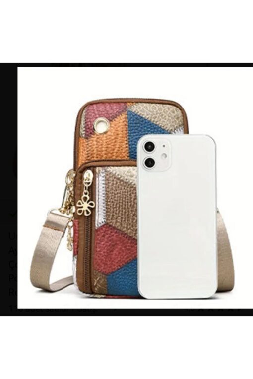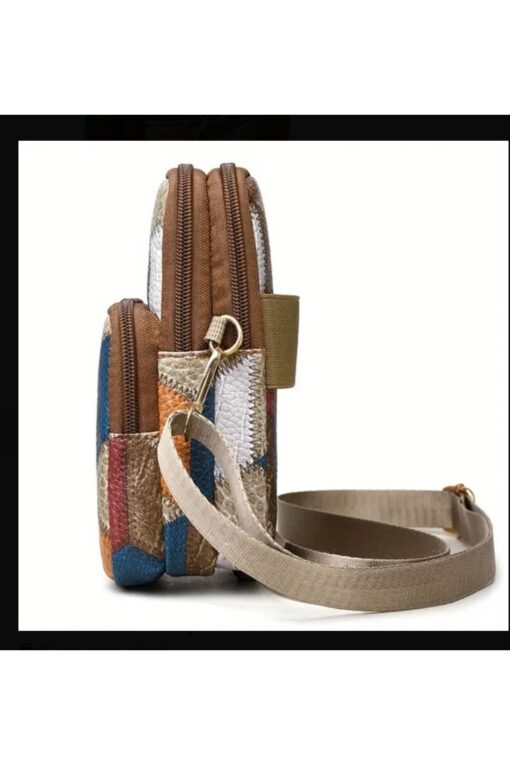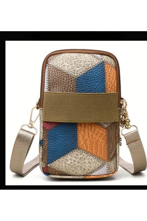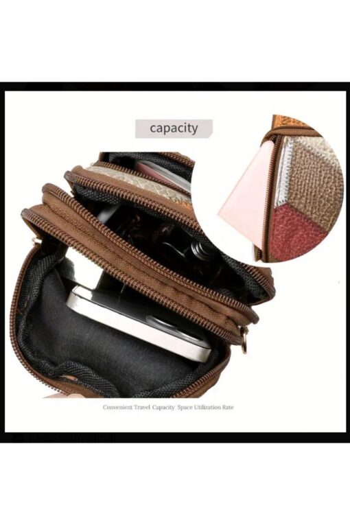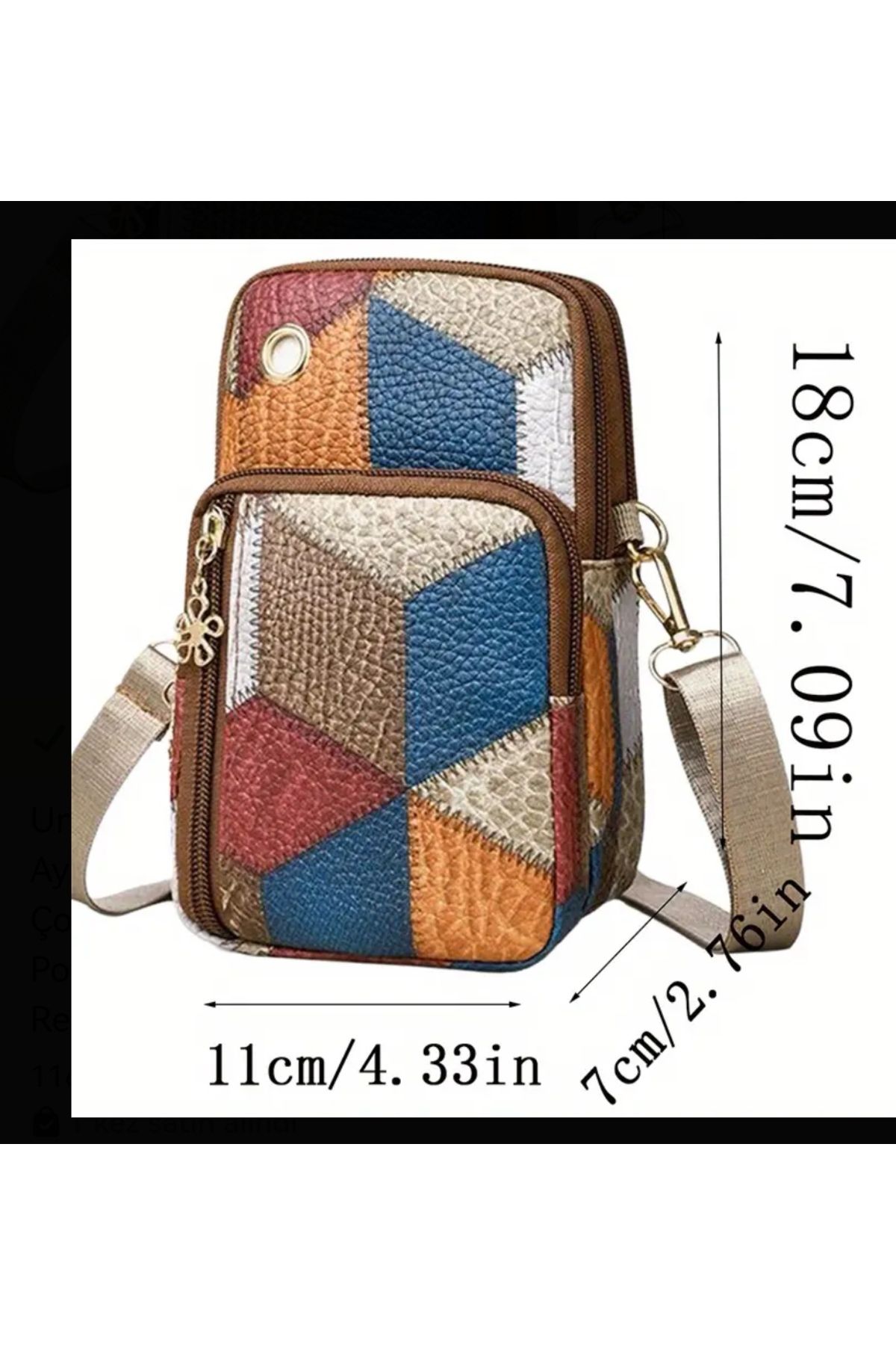 MJCM Uniseks Geometrik PU Bel ve Çapraz Vücut Çantası Ayarlanabilir Askılı, Hafif Günlük Omuz Çantası, Çoklu Fermuarlı Bölmeler, Dekoratif Çiçek Çekişi, Polyester Astar, Bej, Mavi, Kahverengi, Turuncu Renklerde Mevcut, Küçük