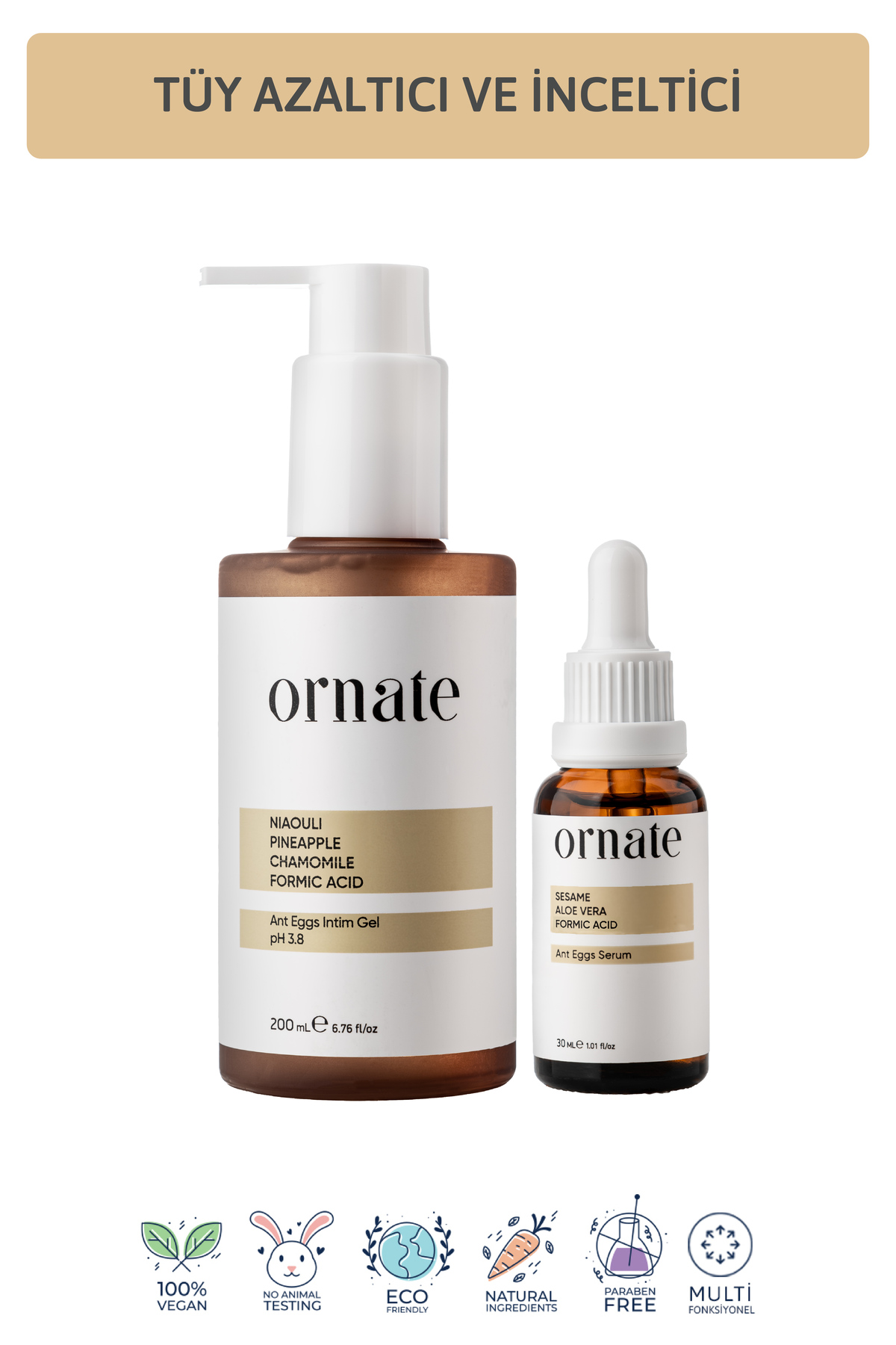 ORNATE Karınca Yumurtası Yağlı İntim Bölgesi için Tüy Azaltıcı ve Aydınlatıcı 2’li Tüy Bakım Seti
