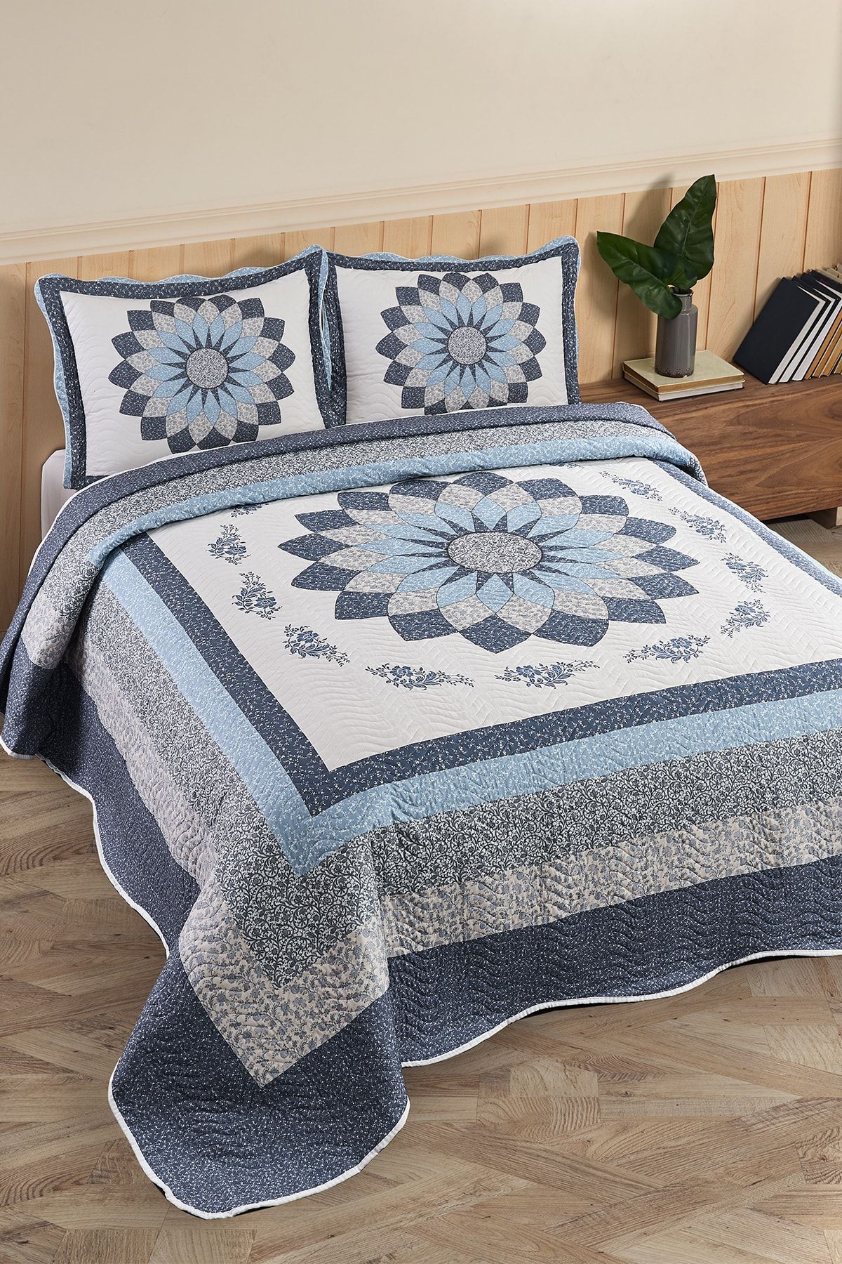 Örtüm Gloria Mavi Çift Kişilik Kapitone Yatak Örtüsü