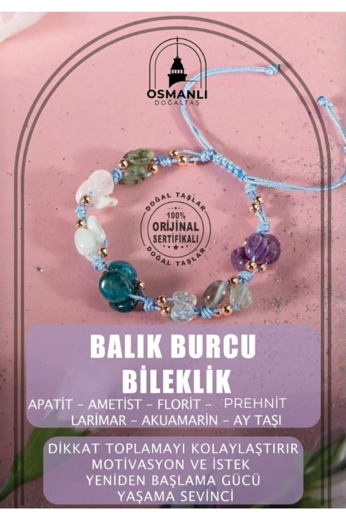 OSMANLI DOĞAL TAŞ Balık Burcu Doğal Taş Natürel Makrome Bileklik