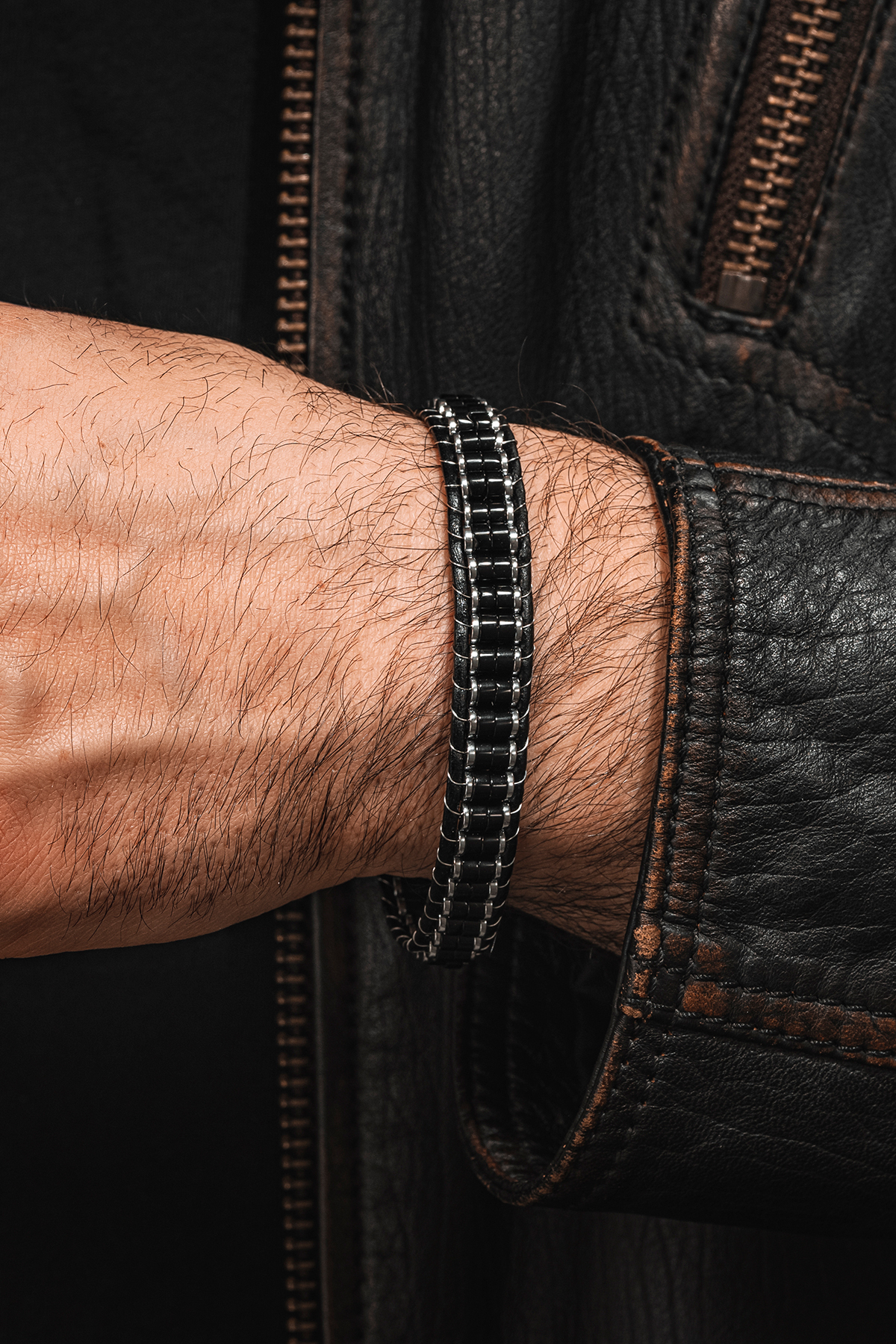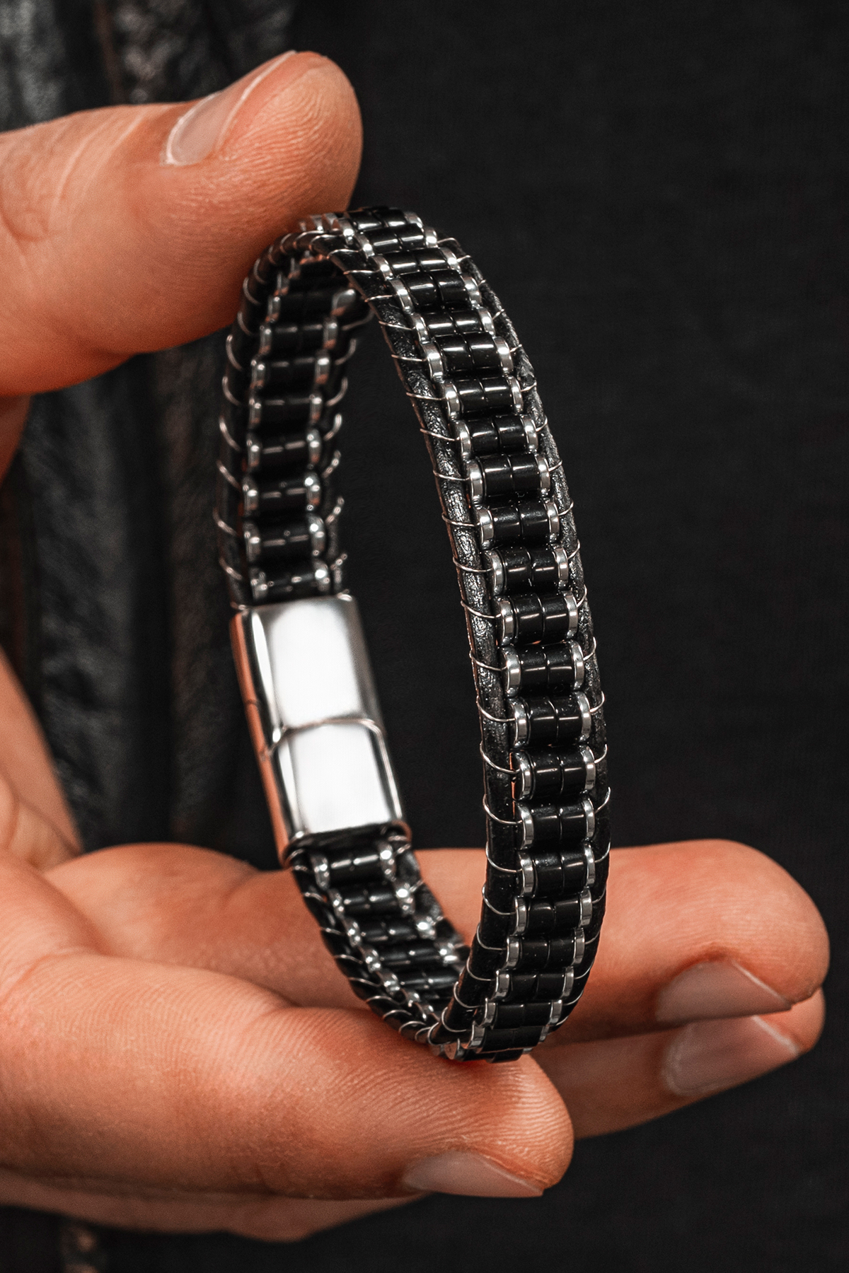 OSMANLI GÜMÜŞ Erkek Kadın Siyah Hematit Taşı Deri Kordon Doğal Taş Bileklik