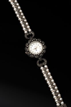 OSMANLI GÜMÜŞ Gelin Saati – Düğün Saati – Linda Inci Ve Markazit Taş Detaylı Gümüş Saat