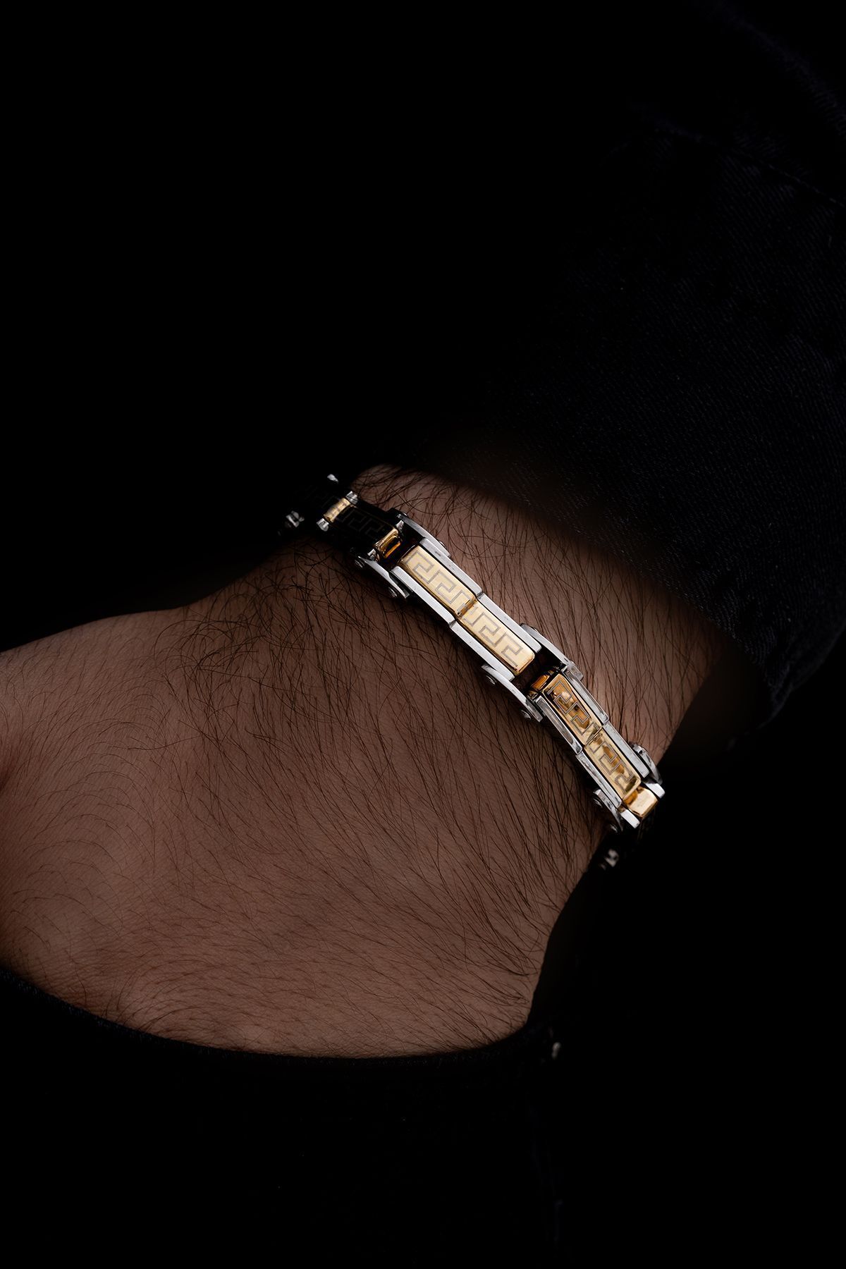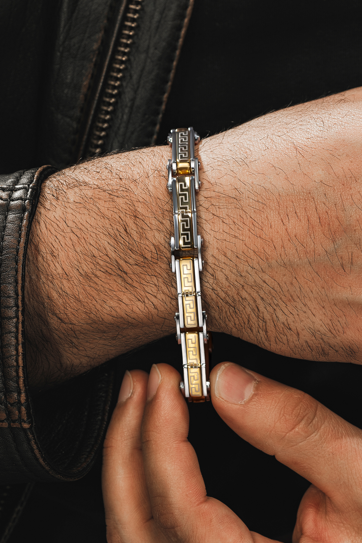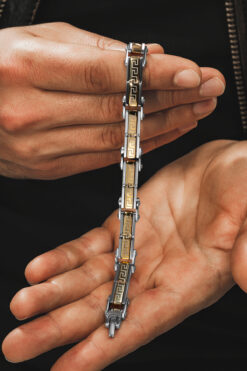 OSMANLI GÜMÜŞ Grek Basamaklı Çelik Sarı Erkek Bileklik Künye Cblaltgrek1