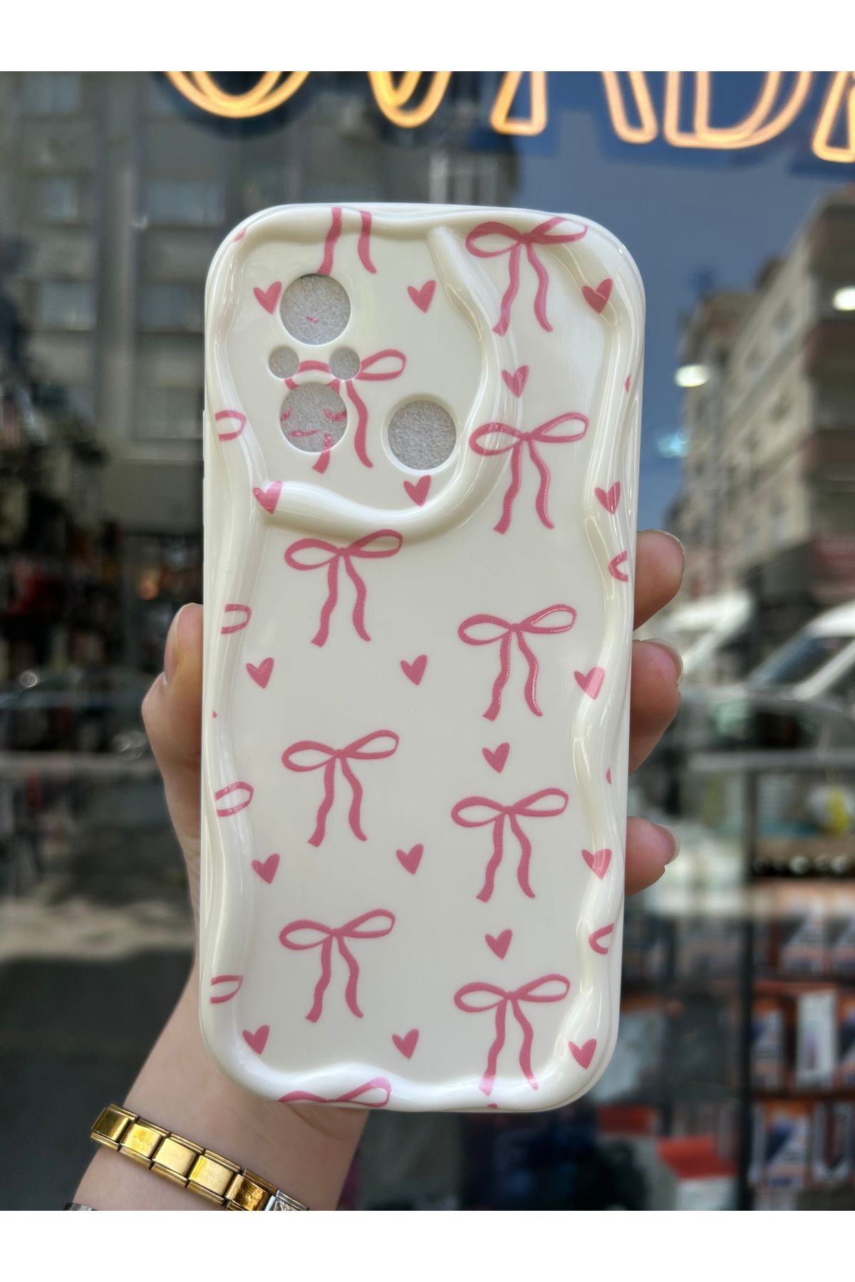 OVADA Xiaomi Redmi 12C Uyumlu Kurdele Ve Kalp Desenli 3D Dalga Kenarlı Kamera Korumalı Kılıf