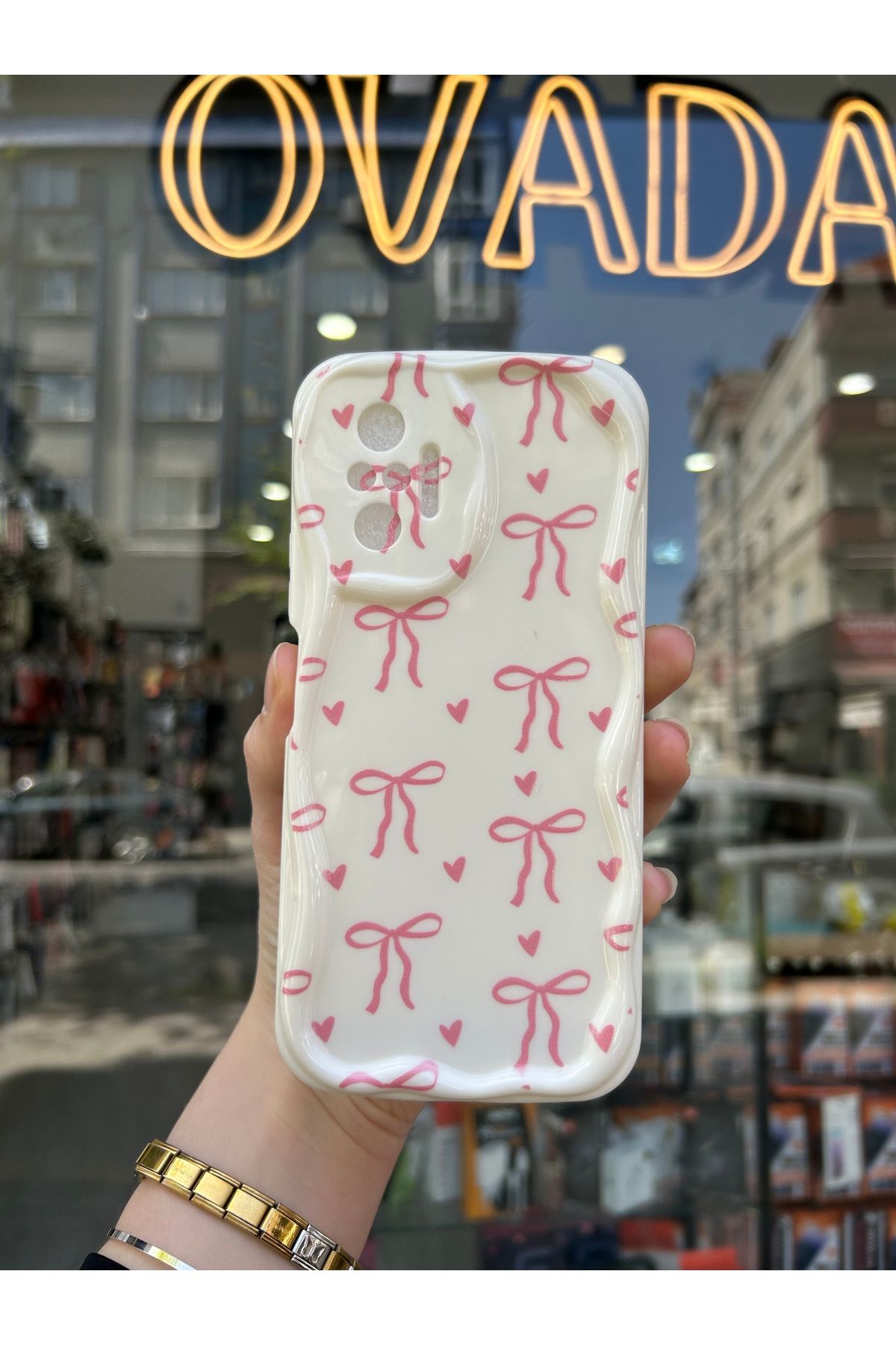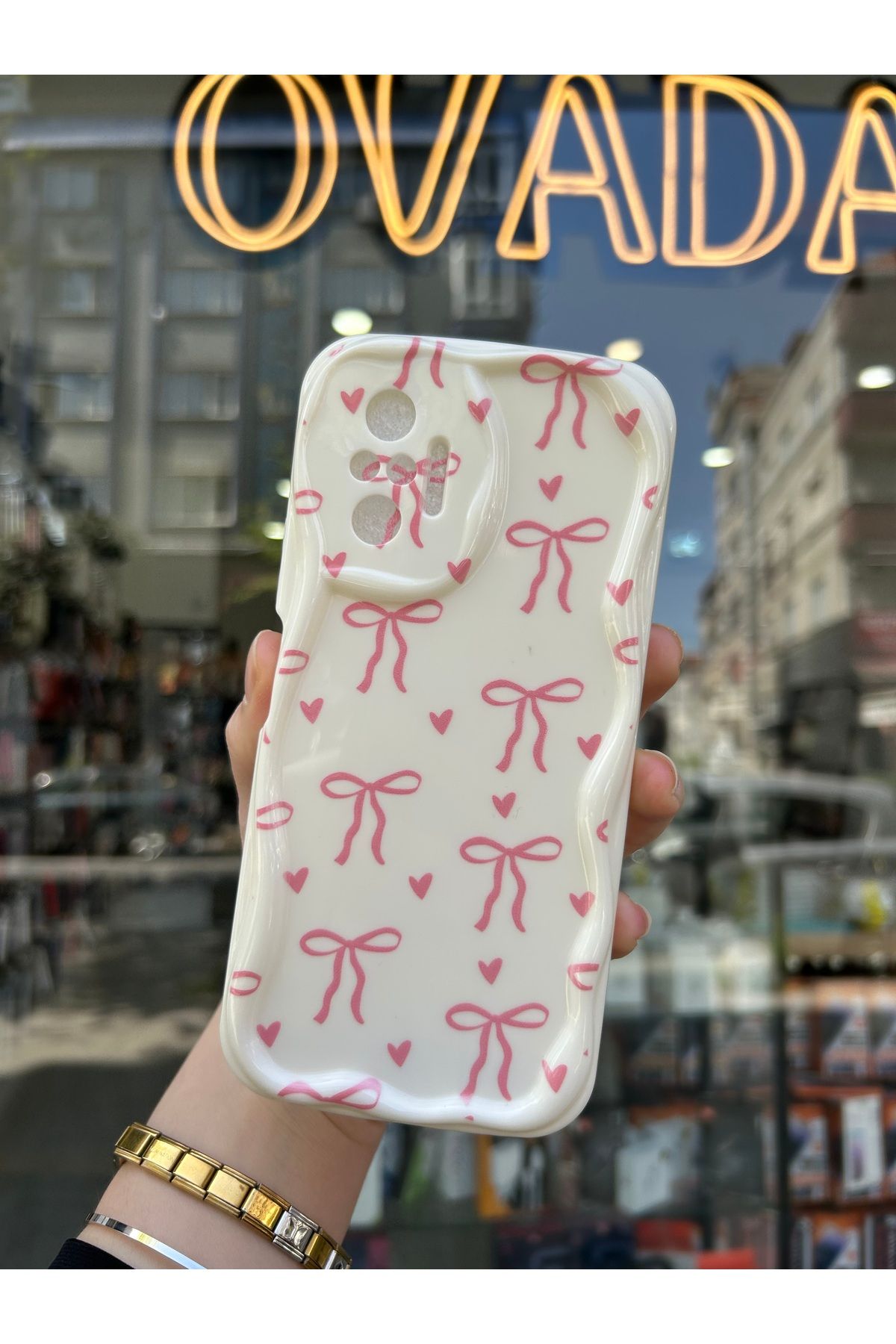 OVADA Xiaomi Redmi Note 10 Pro Uyumlu Kurdele Ve Kalp Desenli 3D Dalga Kenarlı Kamera Korumalı Kılıf