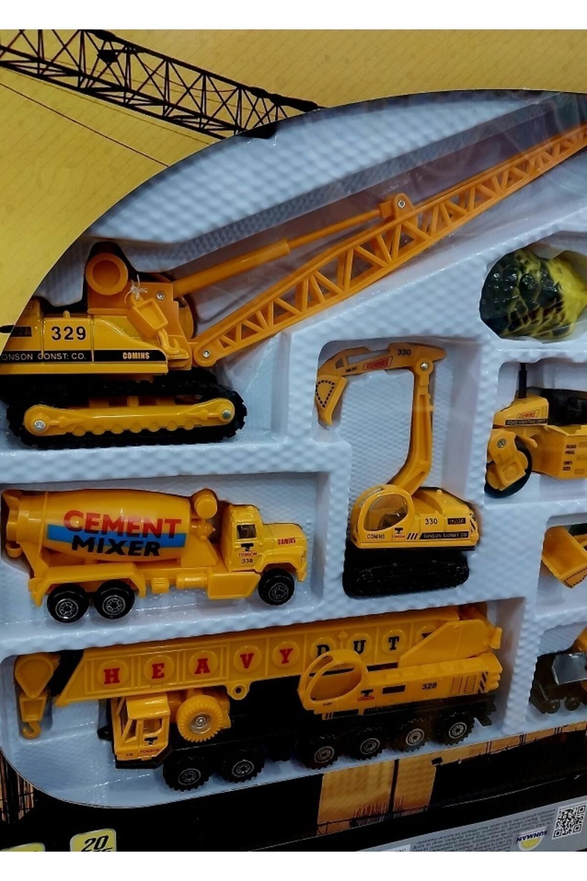 OYUNCAKSAHİLİ İnşaat Metal Yol Çalışması 20li Oyuncak Silindir Asfalt Mikser Vinç Excavatör Kamyon Iş Makina