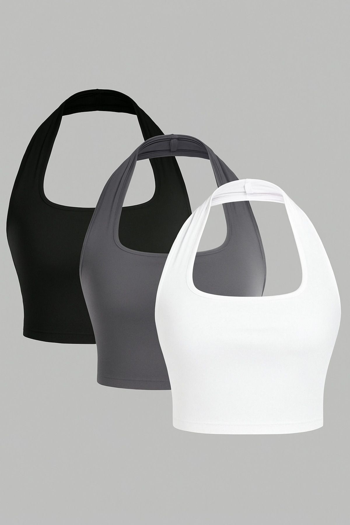 ÖZ PAMUK Kadın Çapraz Kolsuz 3 LÜ Adet Fitilli Crop Basıc Atlet Bluz