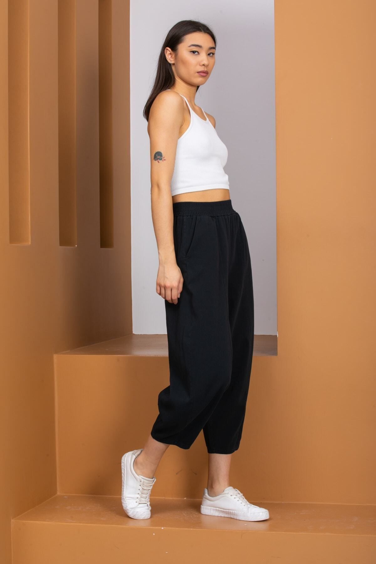 Ozan KOÇ Kadın %100 Pamuk Cepli Gabardin Şalvar Pantolon