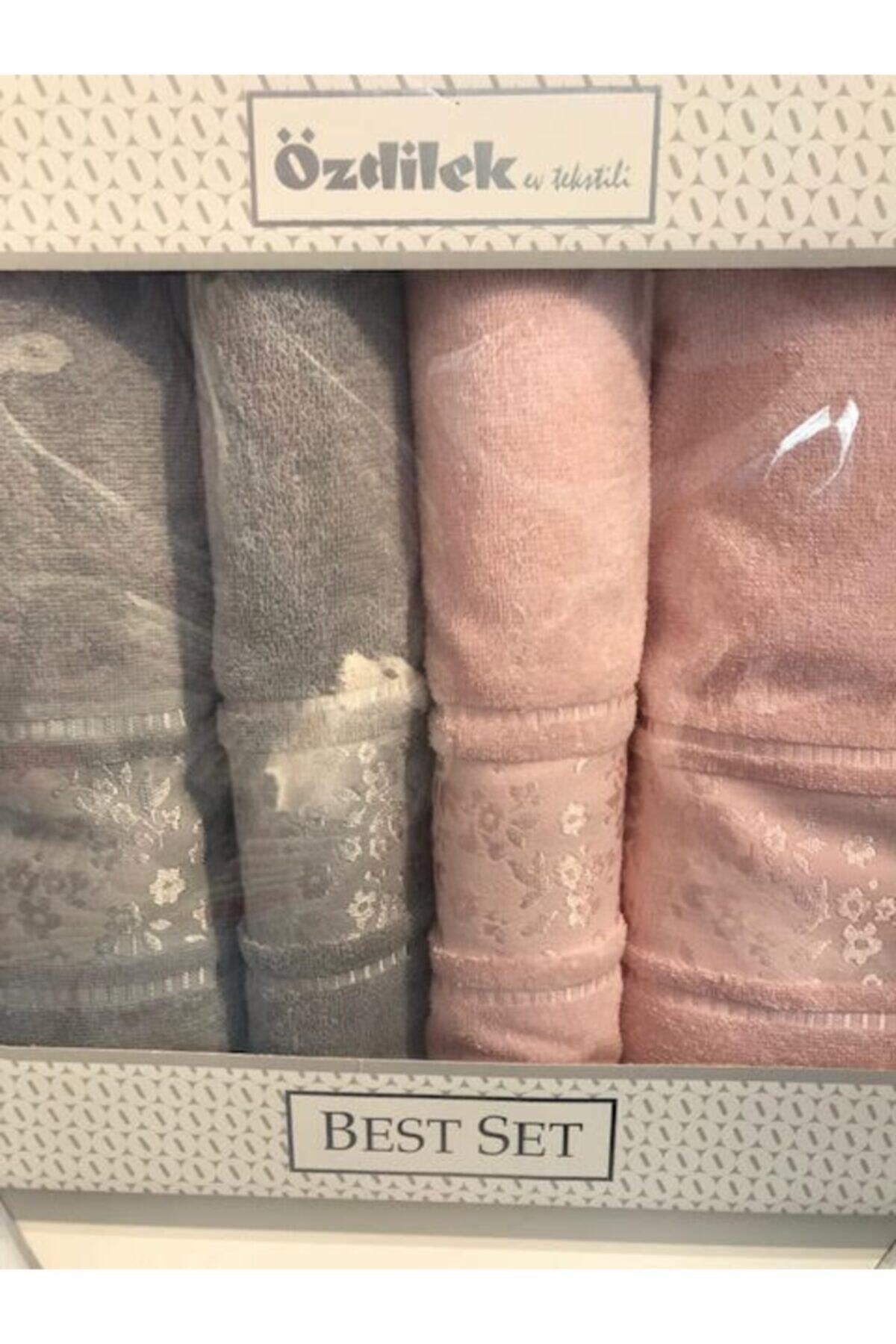 Zeynep Tekstil Royality | 50x90 - 70x140 Cm 4'Lü Banyo Havlu Seti, %100 Pamuklu Havlu Takımı