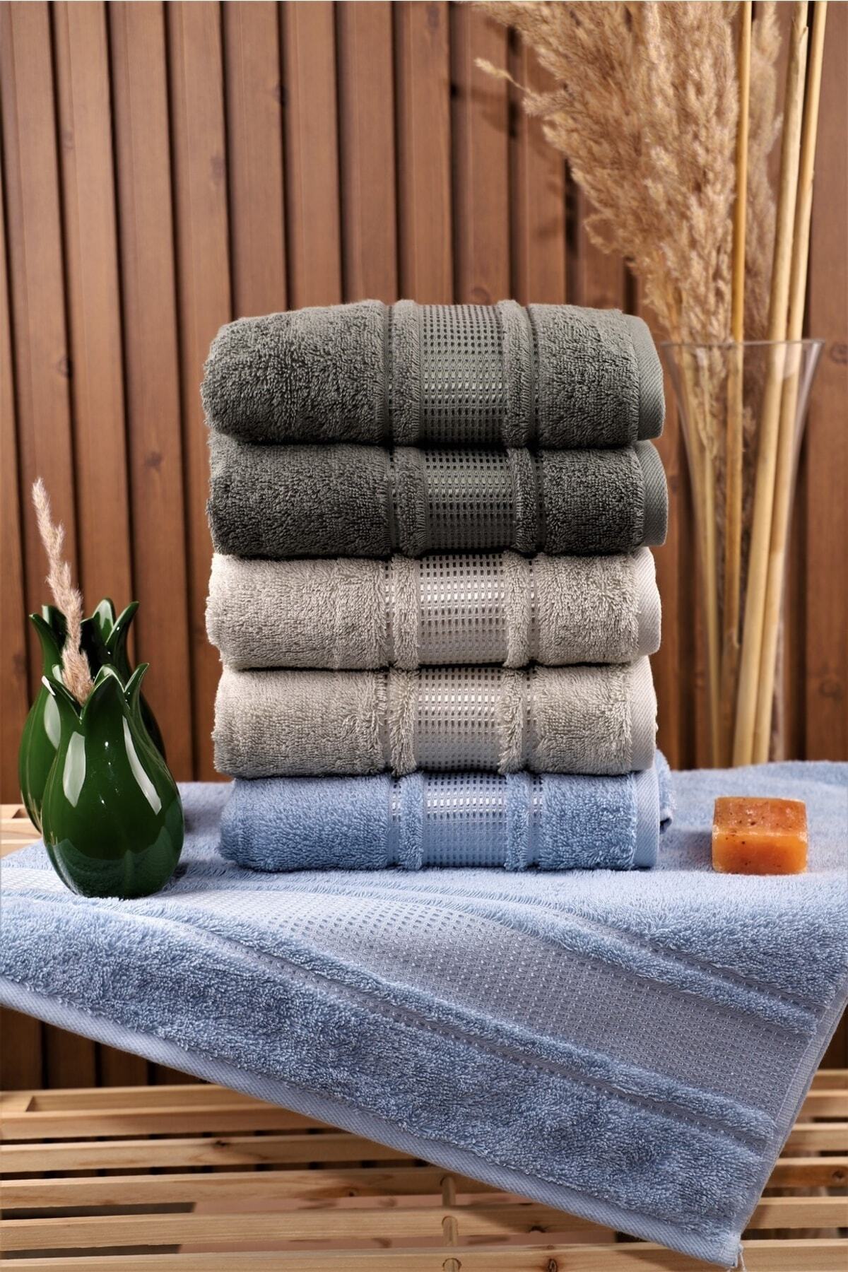 BAMİROSE Liana 50x90 70x140 Cm 4'lü Banyo Havlu Takımı, Plaj Havlusu, Hamam Takımı