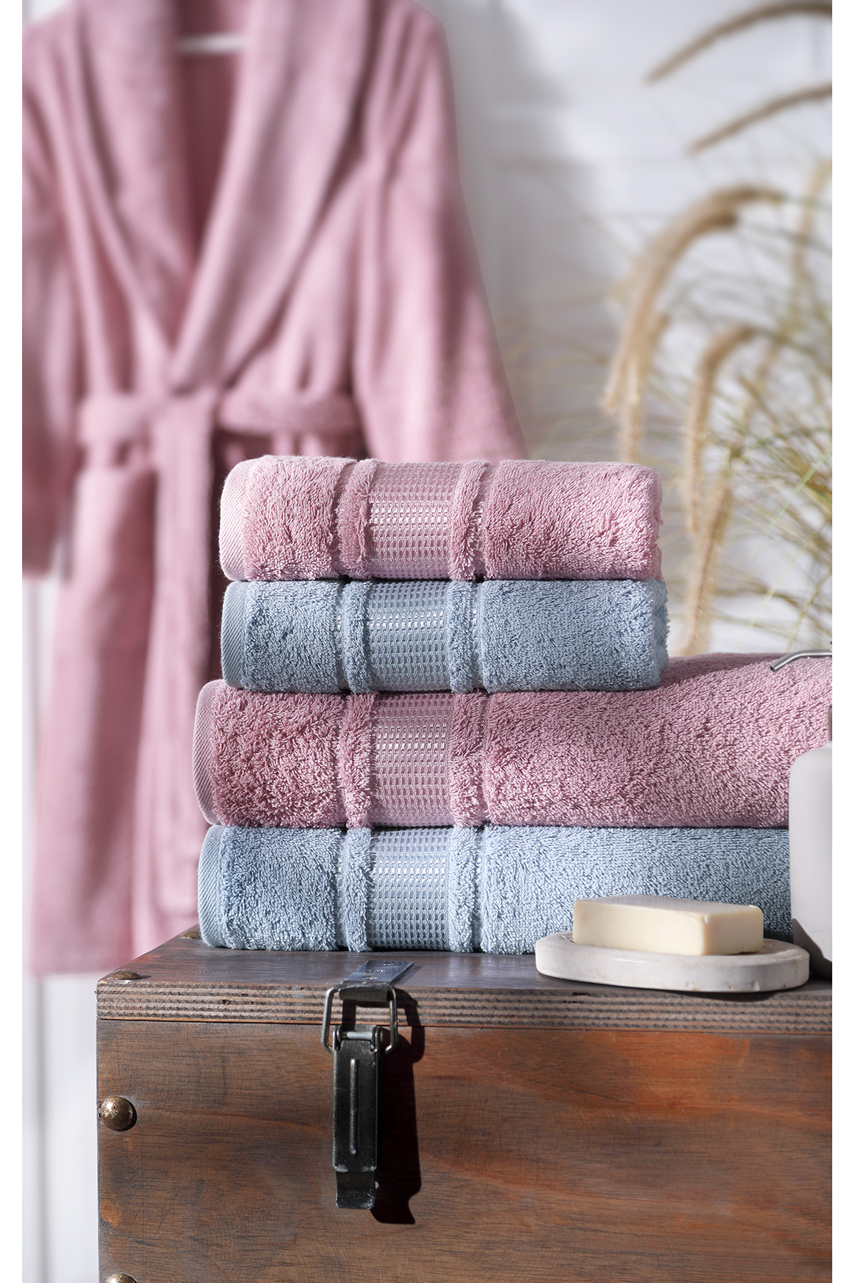 My Catherine 4'lü Banyo Havlu Seti Kalpli - Kalp Desenli Hamam Takımı
