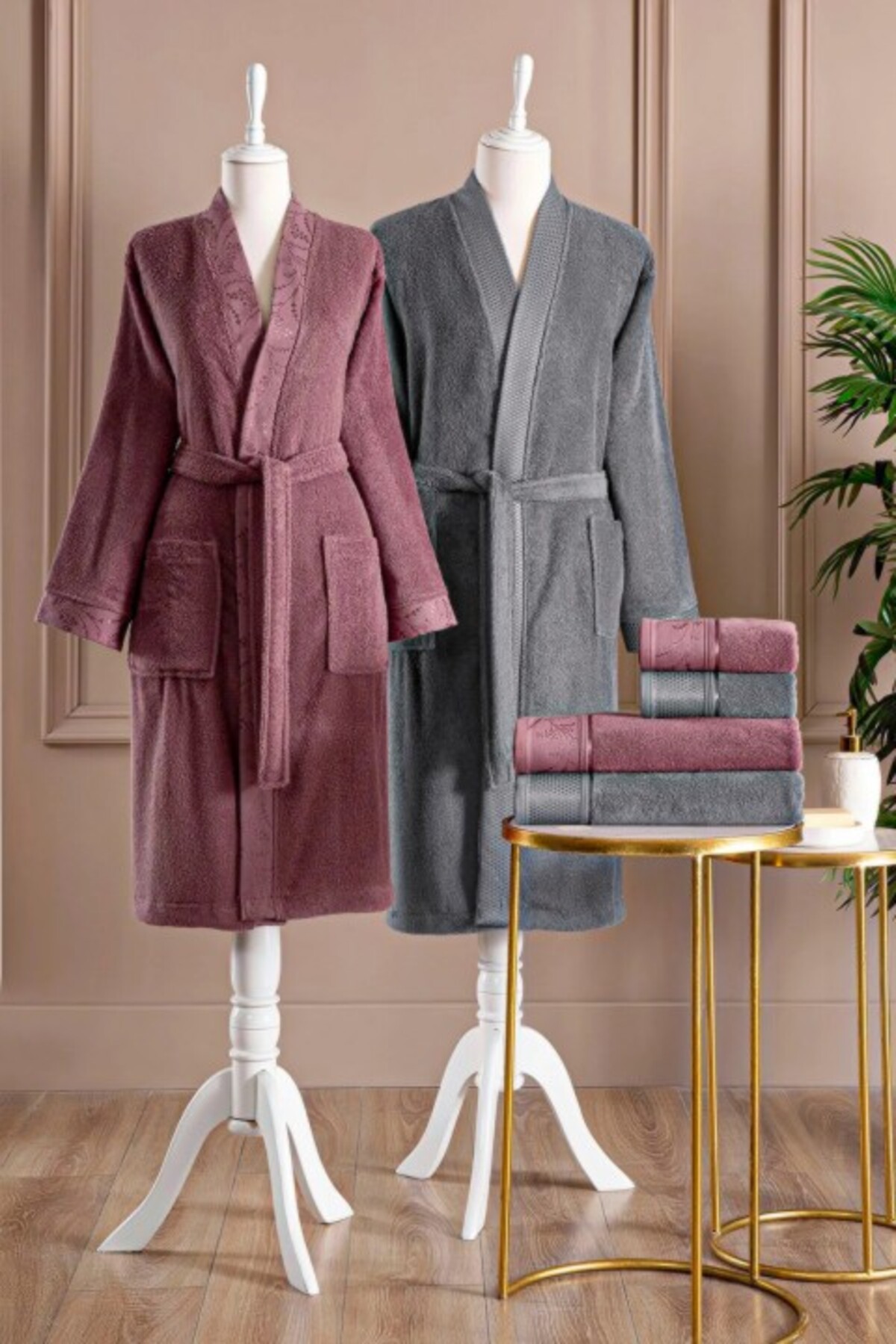 Özdilek Ditsy Aile Bornoz Seti – Mürdüm – Antrasit