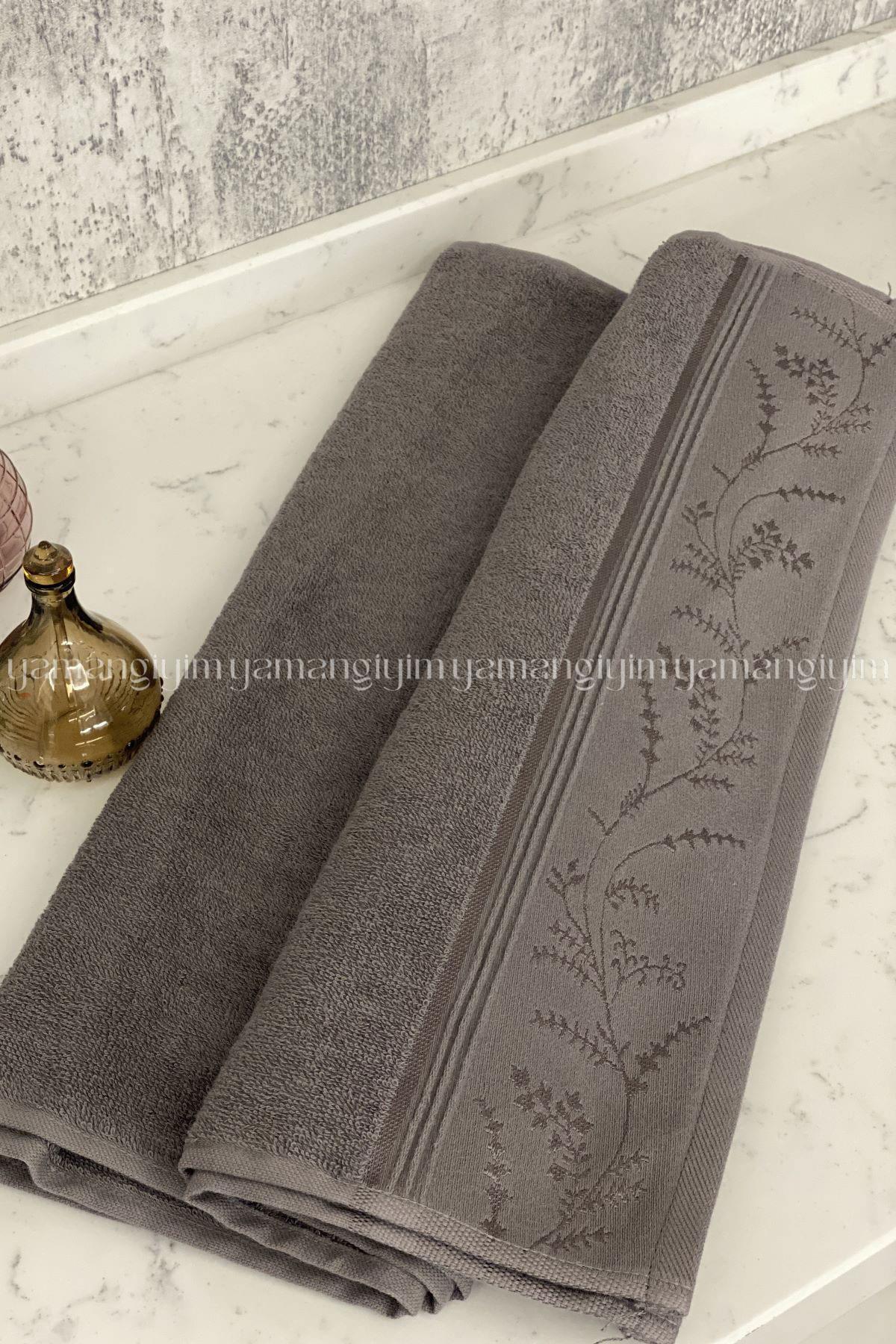 Evidea Soft Samantha 2'li Havlu Seti - Krem / Antrasit - 50x100 cm