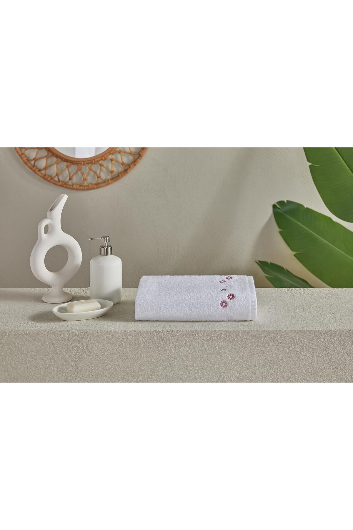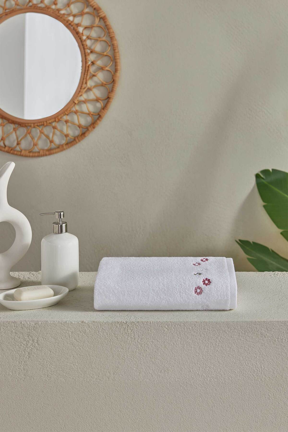 Bella Maison %100 Pamuk Floris Yüz Havlusu Krem (50x90 cm)