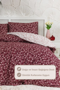 Elart Jasmin Nevresim Takımı Tek Kişilik %100 Pamuk Ranforce Lastikli Çarşaf (160×220 cm) Bordo