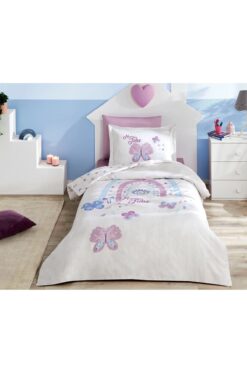 EVKE Tek Kişilik Nevresim Takımı Kız Çocuk Ranforce Pamuklu Prenses Desenli 155×230 Cm