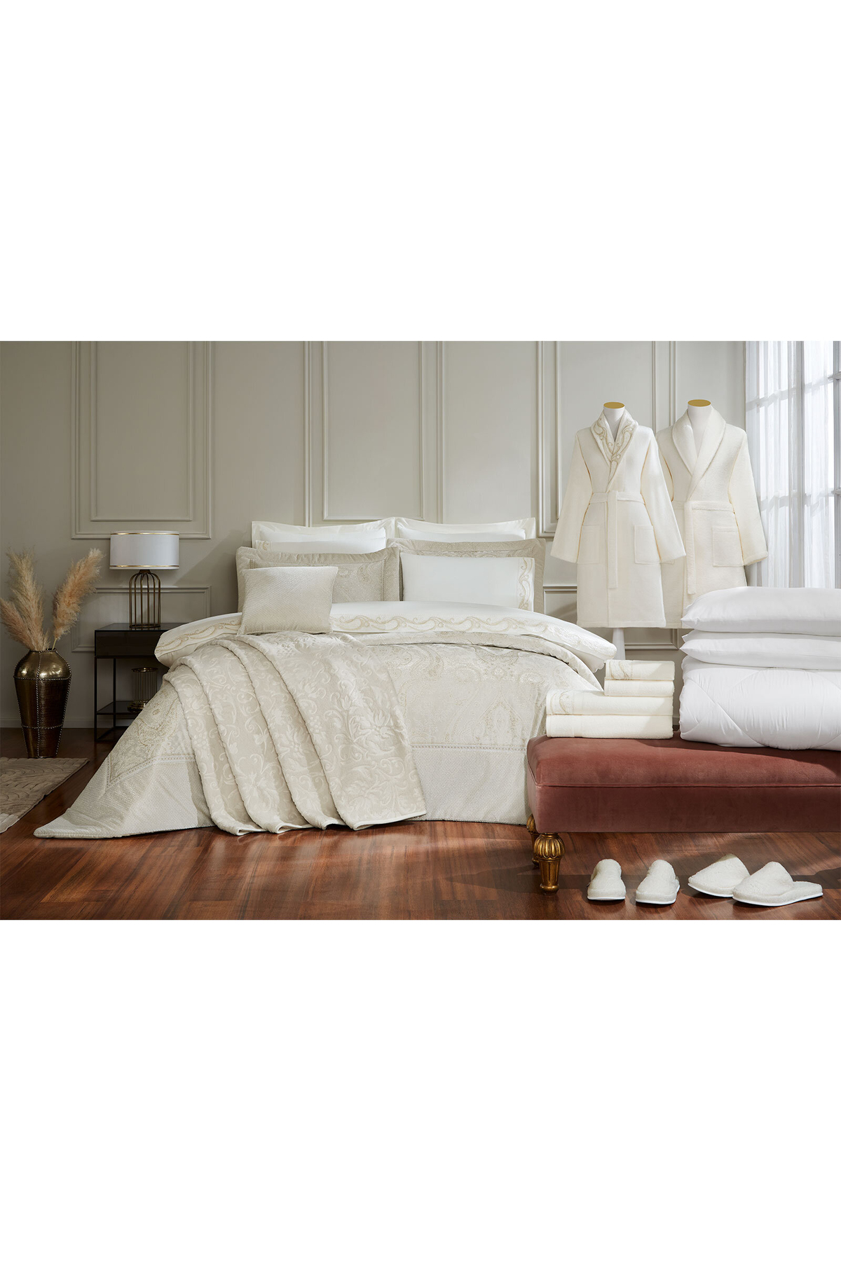 diabella İskandinav Jasmin 3 Parça Çift Kişilik Yatak Örtüsü Krem