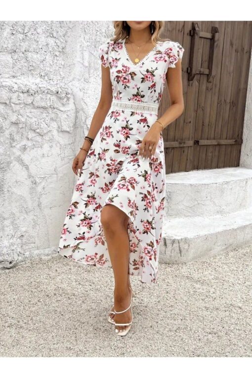 Özel Tasarım Kadın Kısa Kollu V Yakalı Çiçek Desenli Önü Kısa Arkası Uzun Süprem Elbise en ucuz fiyata kozmetikara.com sitemizden sipariş verebilirsiniz.