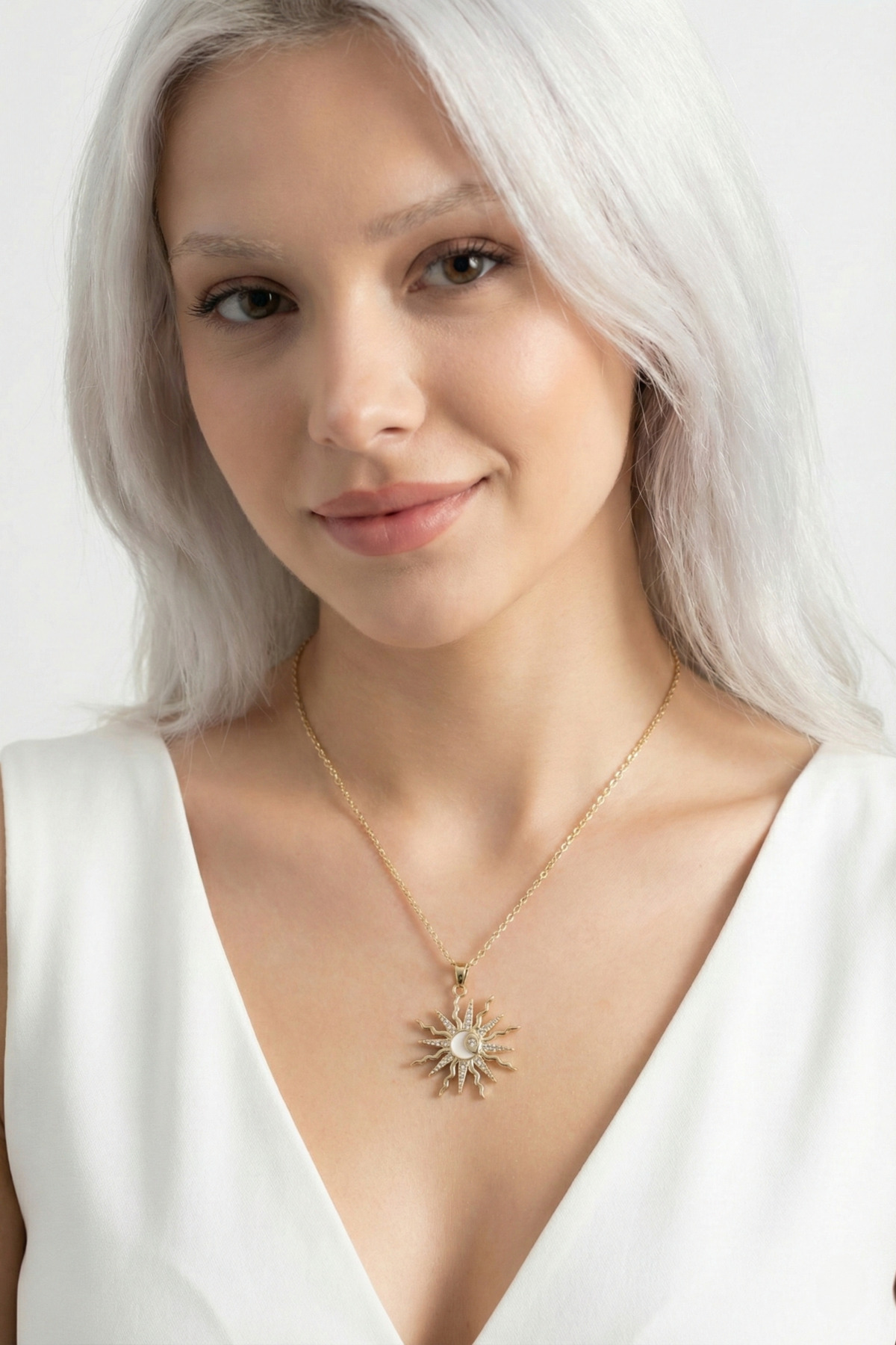özgül takı ve tasarım Güneş Ay ve Yıldız Model Zirkon Taşlı Paslanmaz Çelik Gold Renk Kadın Kolye ürününü en uygun fiyata kozmetikara.com sitemizden sipariş verebilirsiniz.