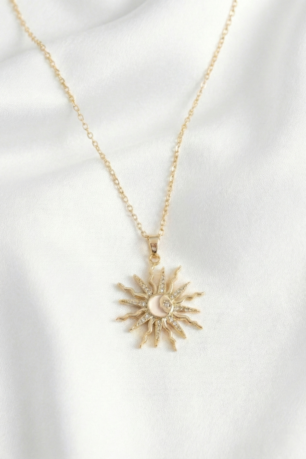 özgül takı ve tasarım Güneş Ay ve Yıldız Model Zirkon Taşlı Paslanmaz Çelik Gold Renk Kadın Kolye ürünü ucuz fiyat, hızlı kargo imkanı ile hemen sitemizden sipariş verin.