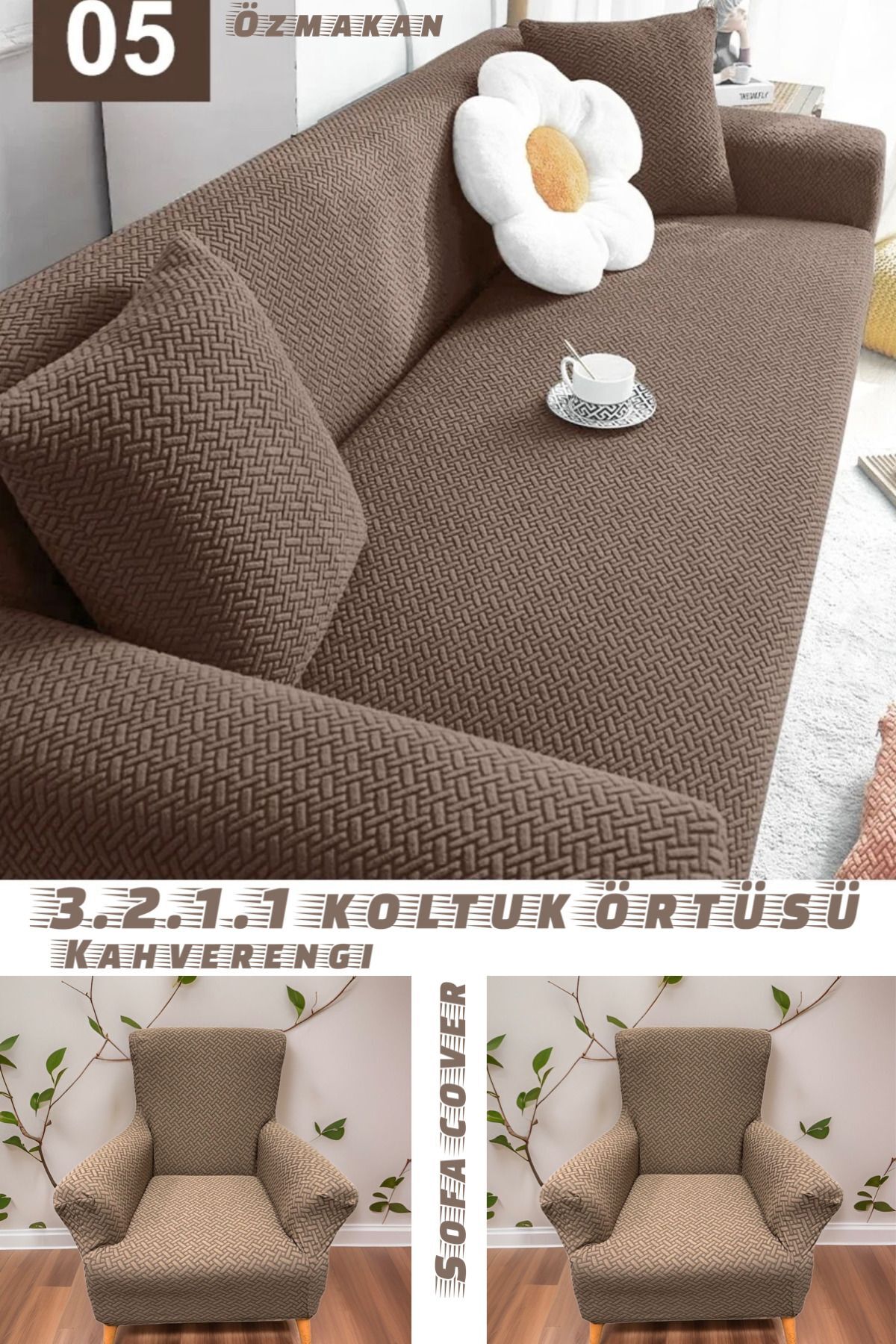 Faiend Jakarlı 3 3 1 1 Lastikli Kanepe Örtüsü | Lastikli Koltuk Örtüsü | koltuk kılıfı Takımı