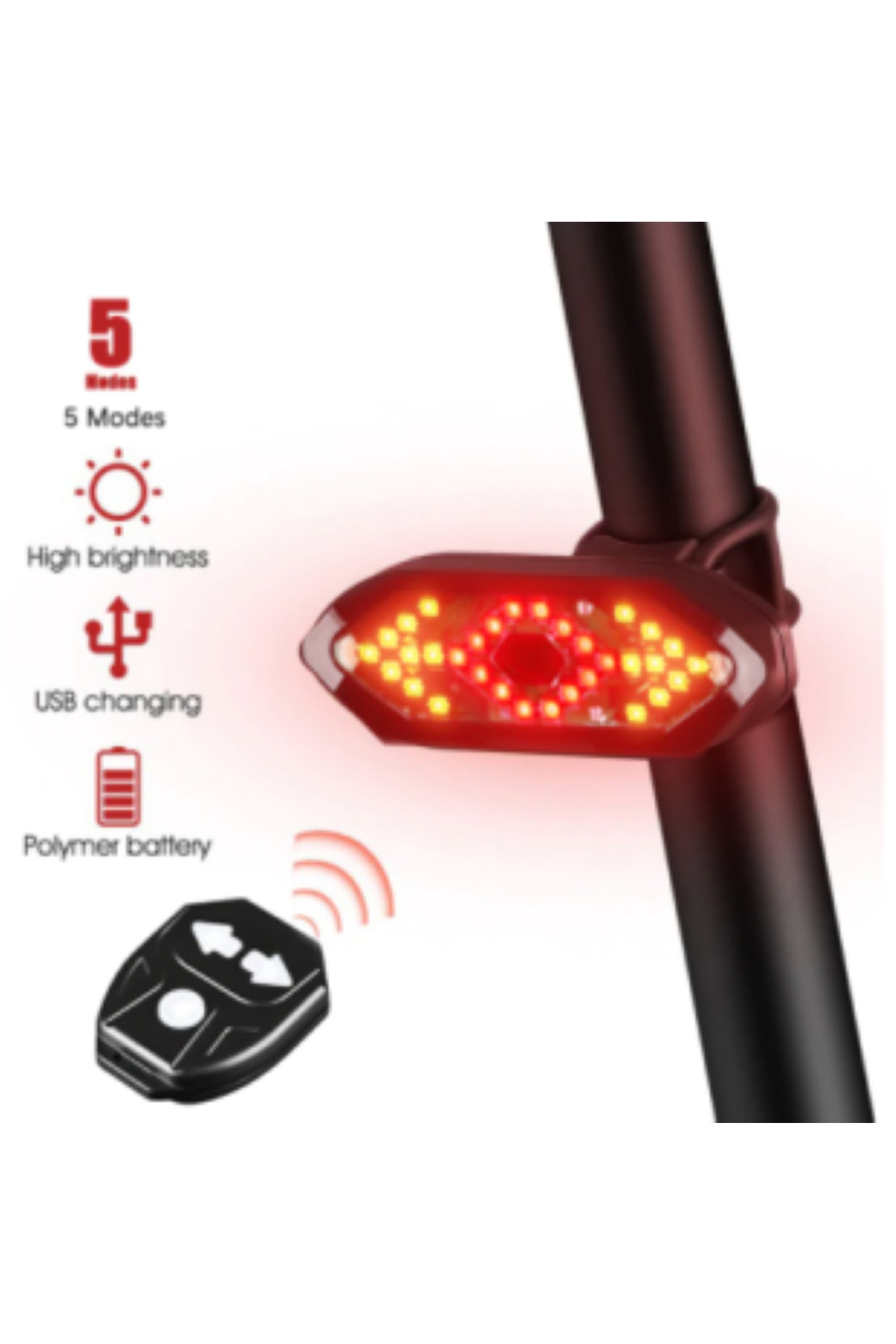 Pallero 5 Modlu Su Geçirmez Usb Led Şarjlı Sinyal Kablosuz Kumandalı Bisiklet – Scooter Arka Işık