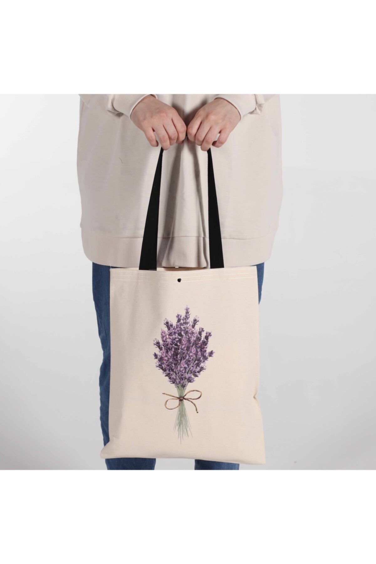 pamukcanta Çıtçıtlı Kalın Kumaş Lavanta Tasarım Bez Çanta