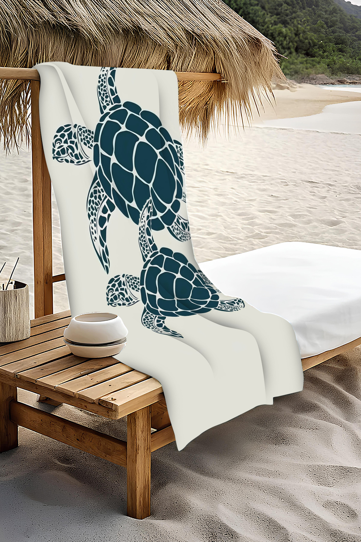 PATRON Dijital Baskı Plaj Deniz Havlusu Kaplumbağa Desenli Peştamal HVL0128